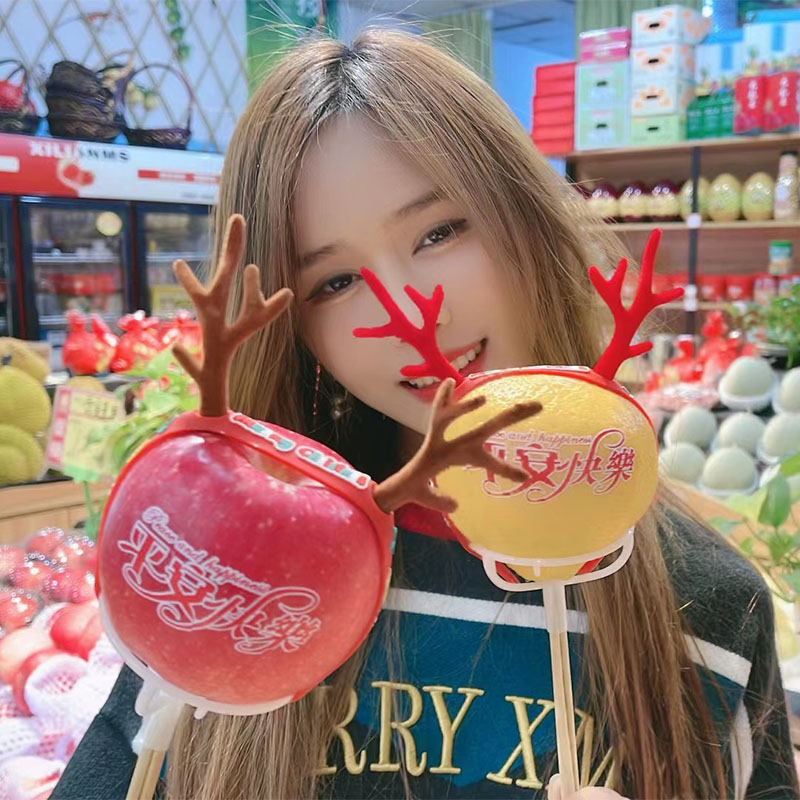 圣诞纯色鹿角--苹果托--水晶贴纸