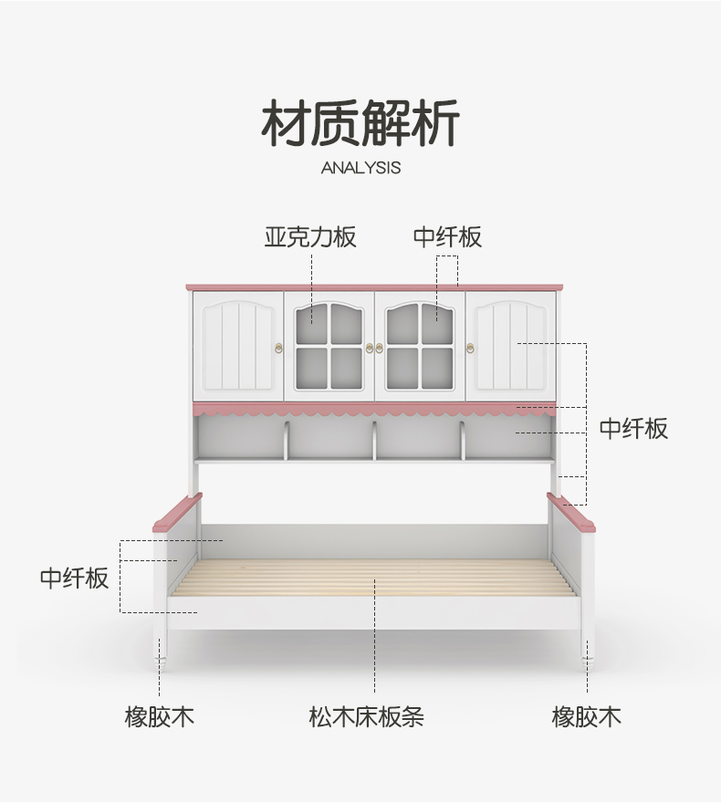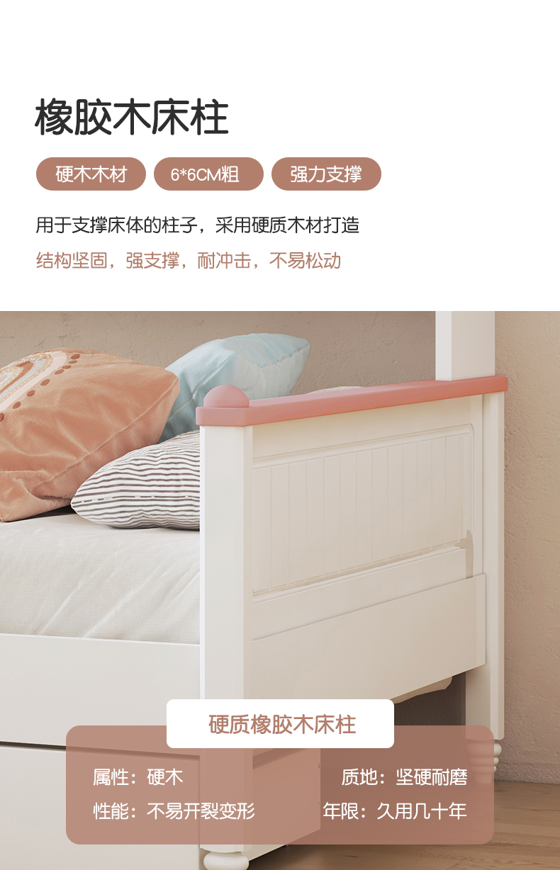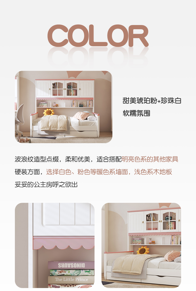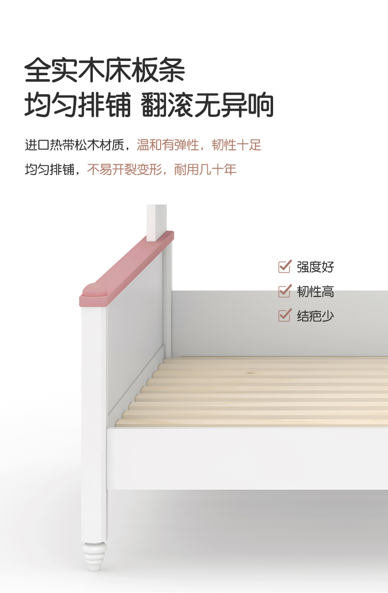 喜梦宝儿童床现代简约书架床多功能储物床粉色女孩卧室侧高床 茉莉系列