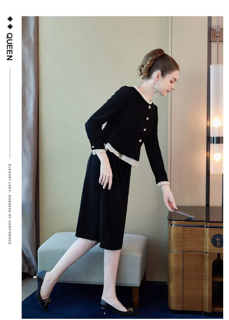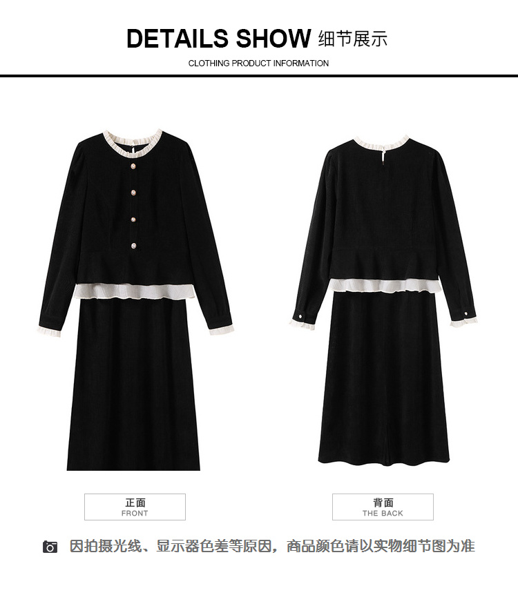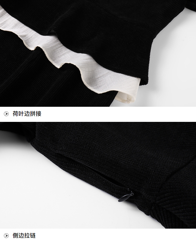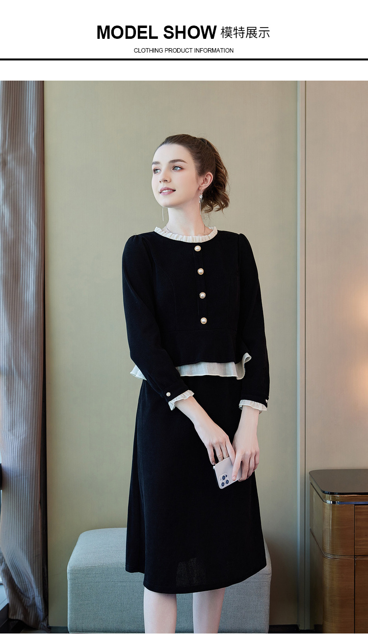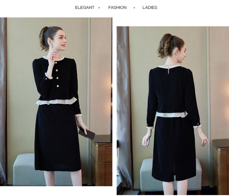 奢姿2025秋装新款时尚简约大码女装休闲百搭纽扣装饰黑撞杏连衣裙9933853321