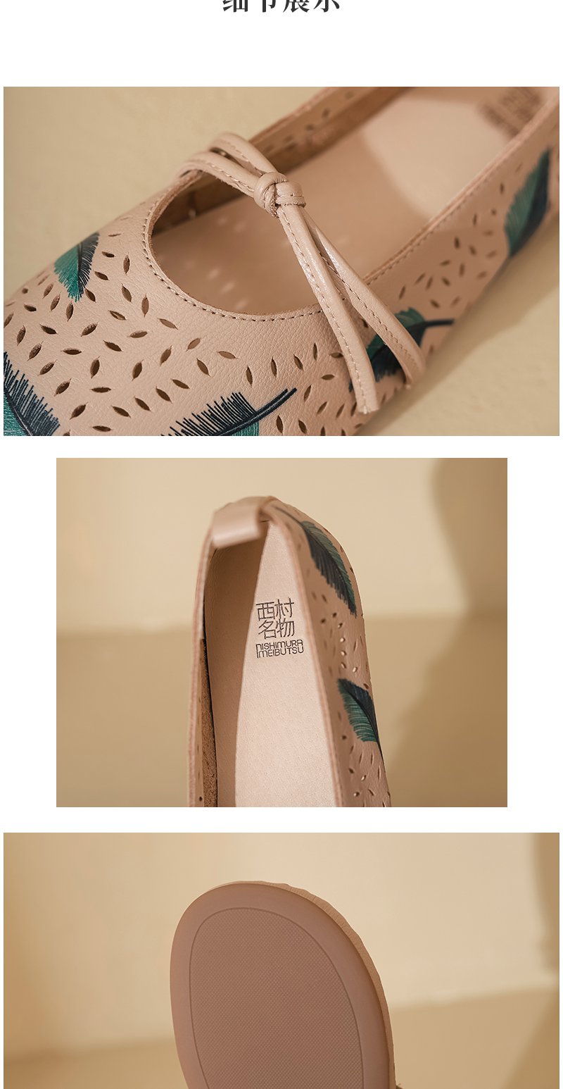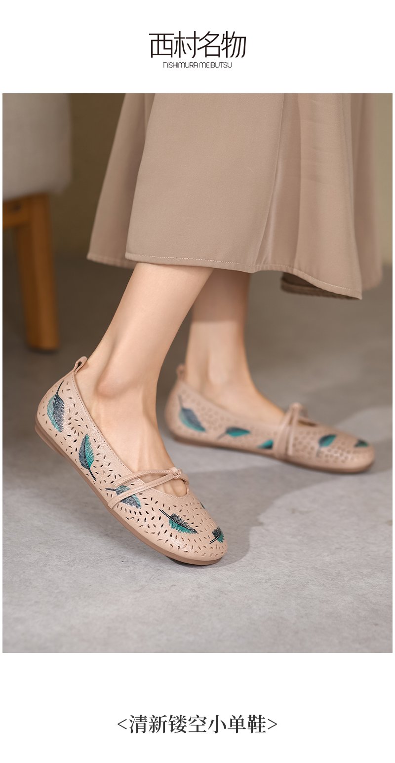 西村名物2022原创设计文艺森系浅口单鞋真皮牛皮圆头平底鞋X22AH10031