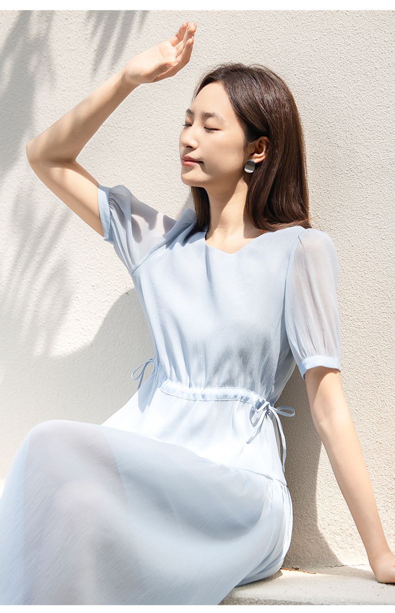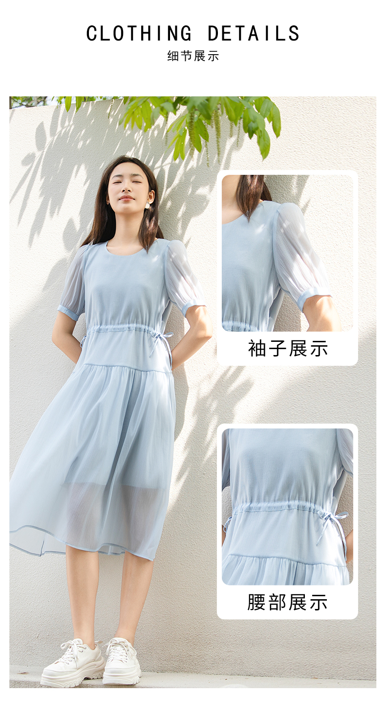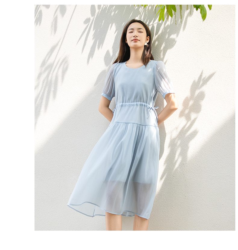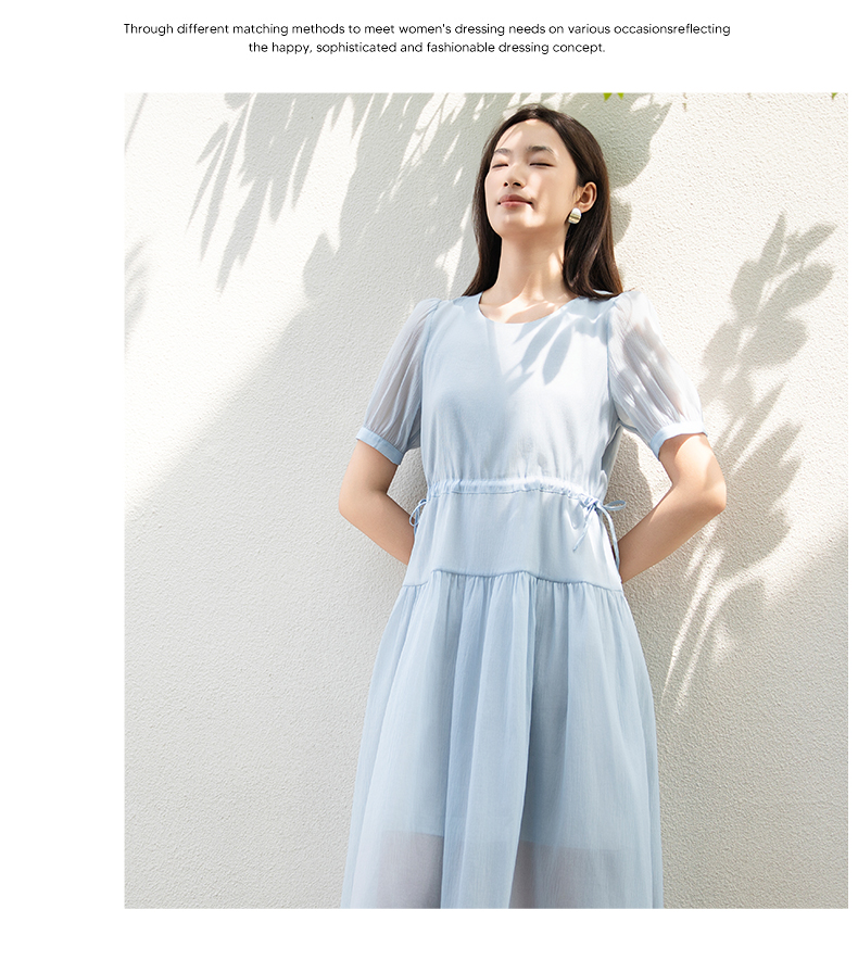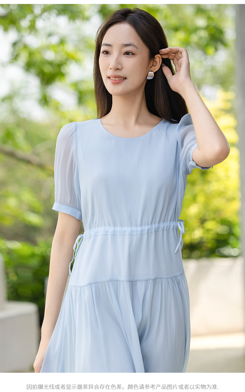 oldcolour夏季新款法式连衣裙女中长款抽绳收腰仙女裙P24101281