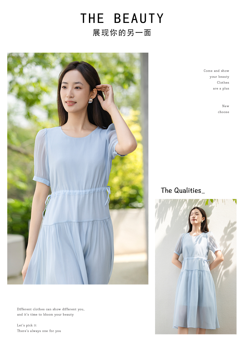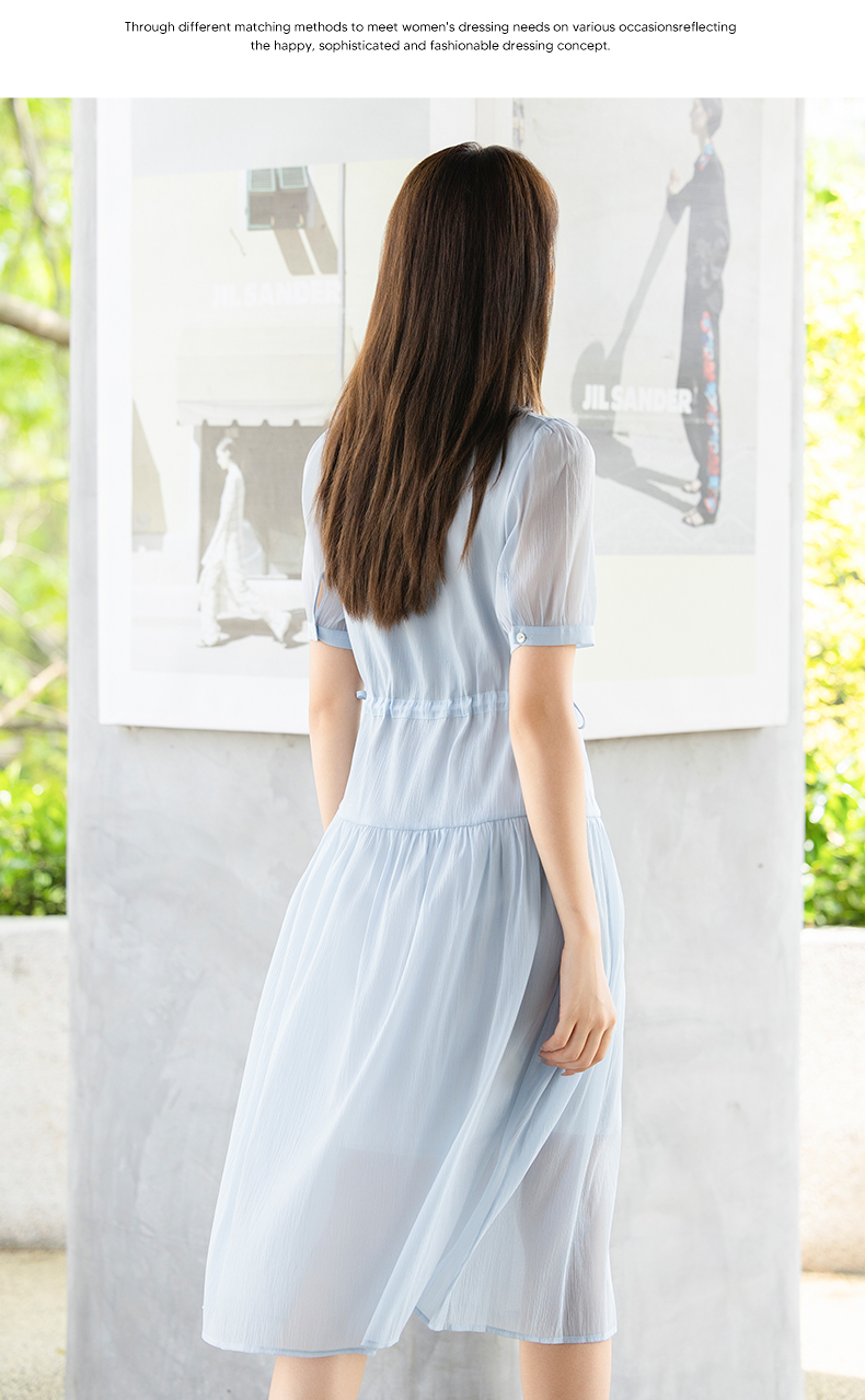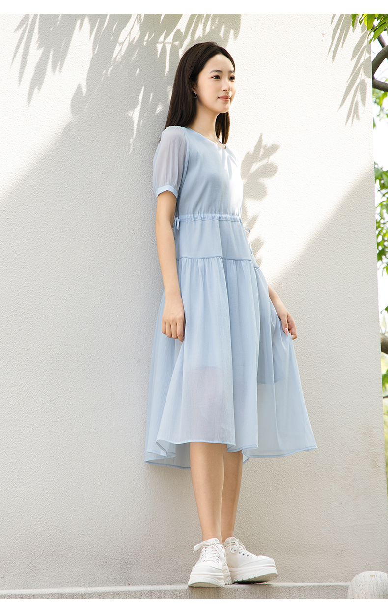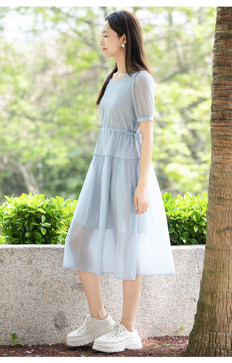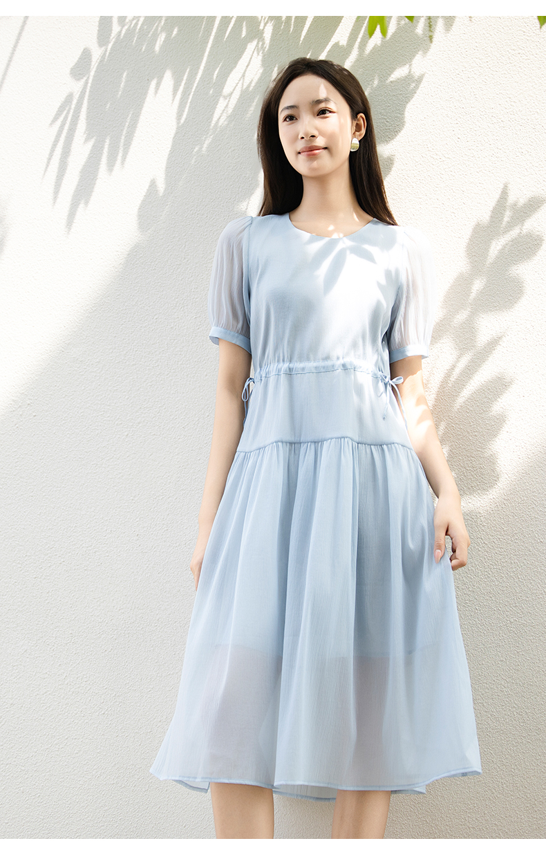 oldcolour夏季新款法式连衣裙女中长款抽绳收腰仙女裙P24101281