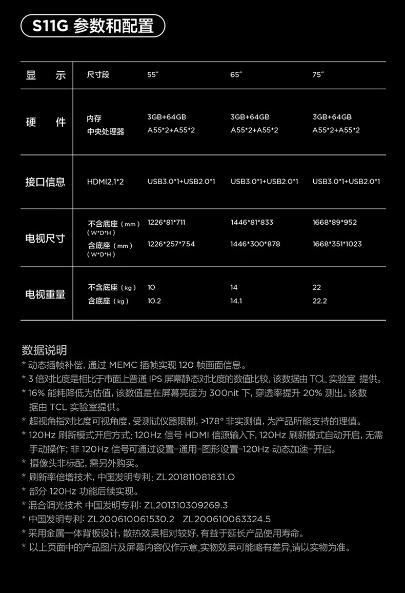 TCL 75S11G 高色域 120Hz 3+64GB大内存 4K超高清 人工智能 液晶平板电视机 75英寸