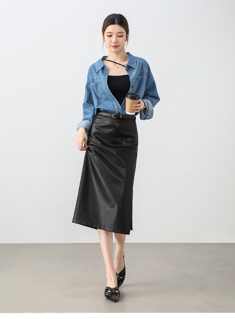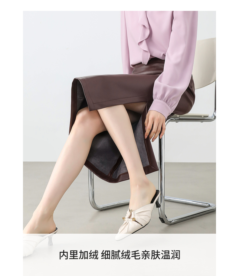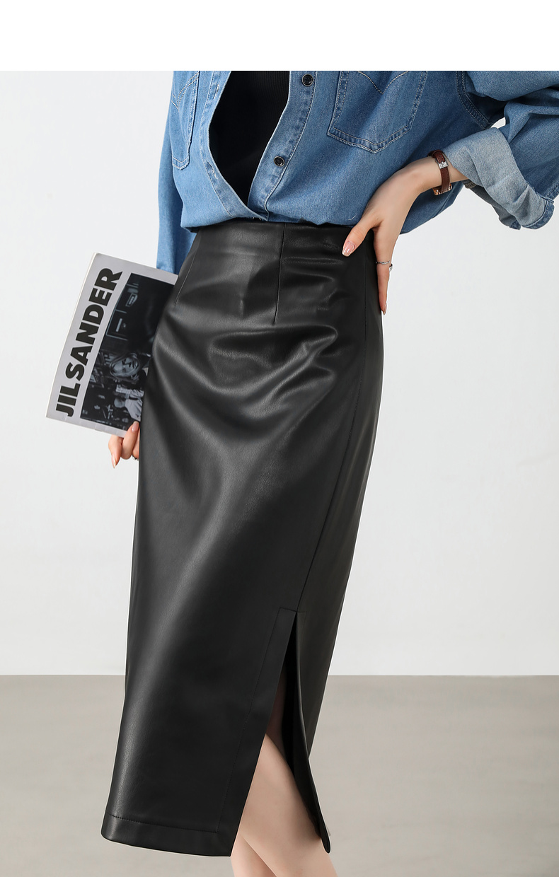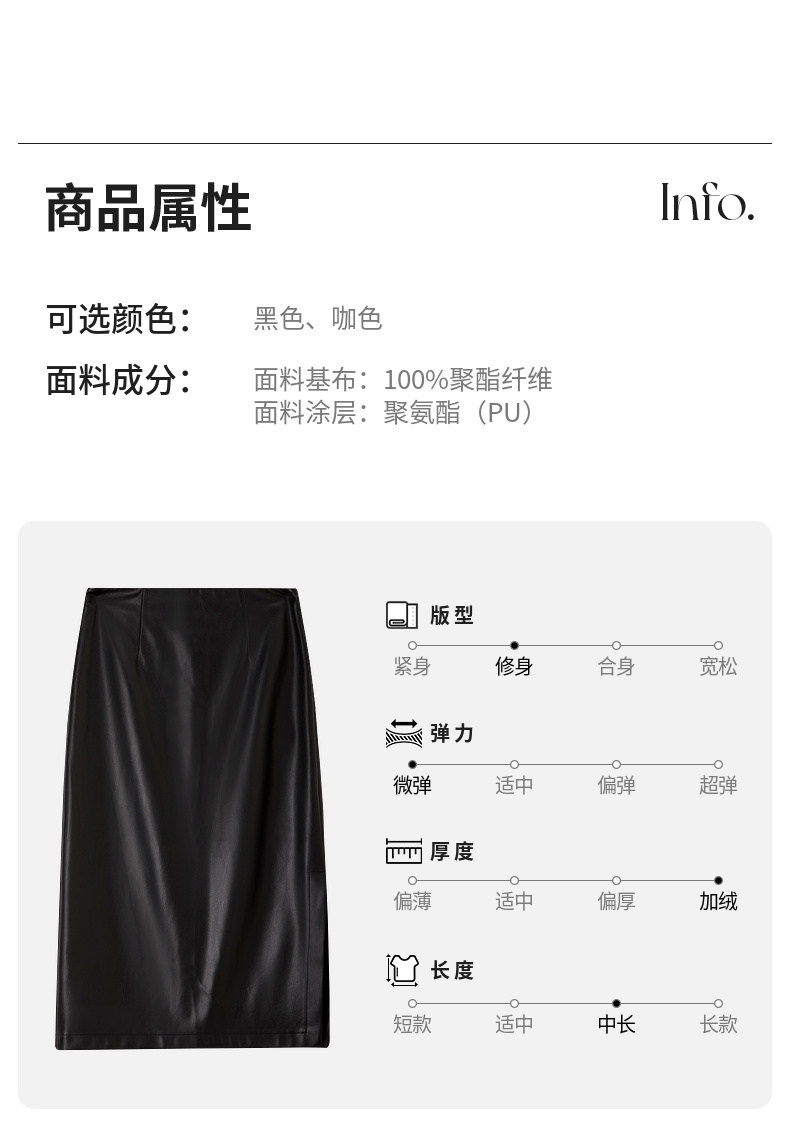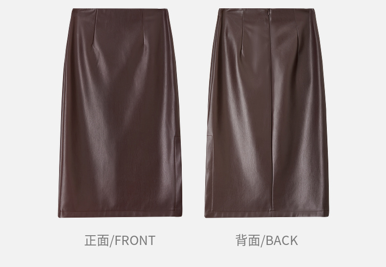 【内购】时髦柔软PU皮通勤百搭包臀开衩裙中长裙美拉德复古高腰加绒半裙-151Q58382