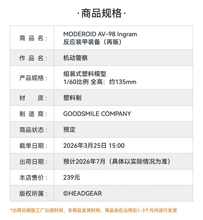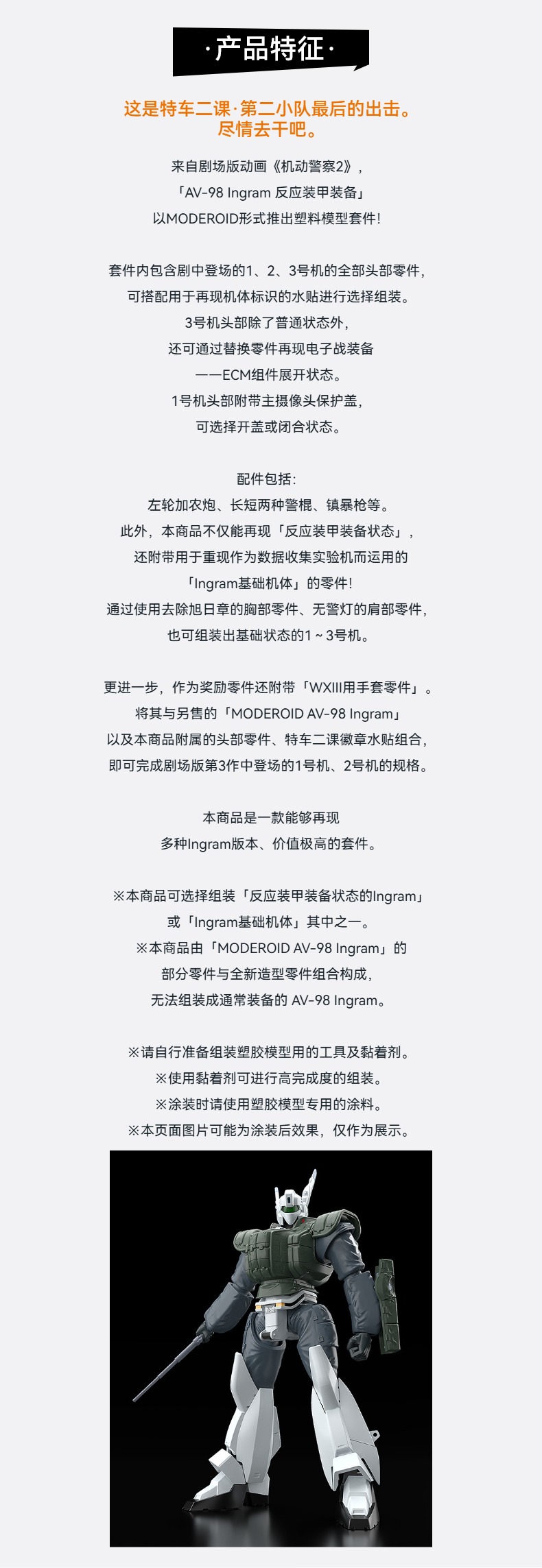 【GSC预售定金】MODEROID AV-98 Ingram 反应装甲装备 机动警察