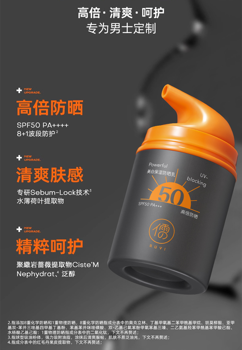 【⚡抢!第2件0元,需拍2件】男士防晒霜户外出游专用运动防紫外线男生隔离霜乳清爽不油腻假白|儒意官方旗舰店
