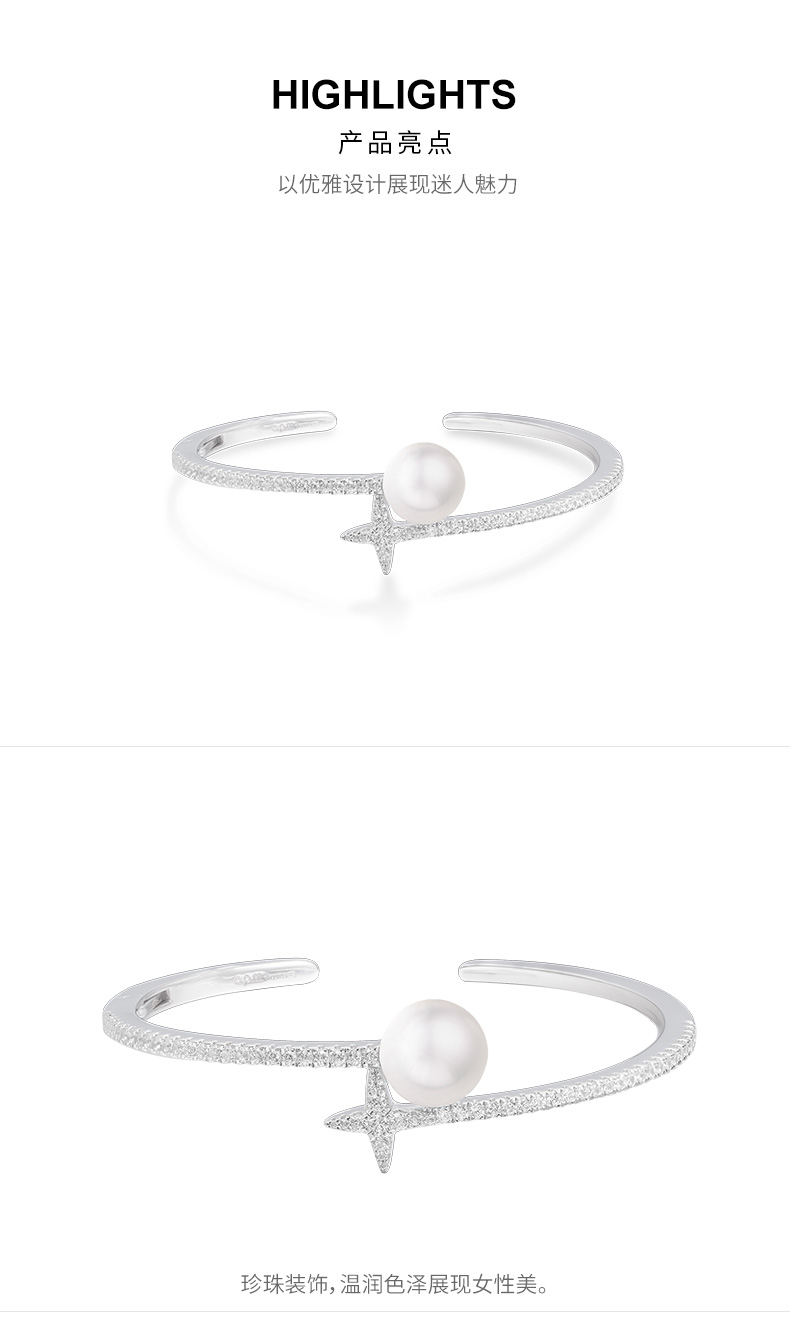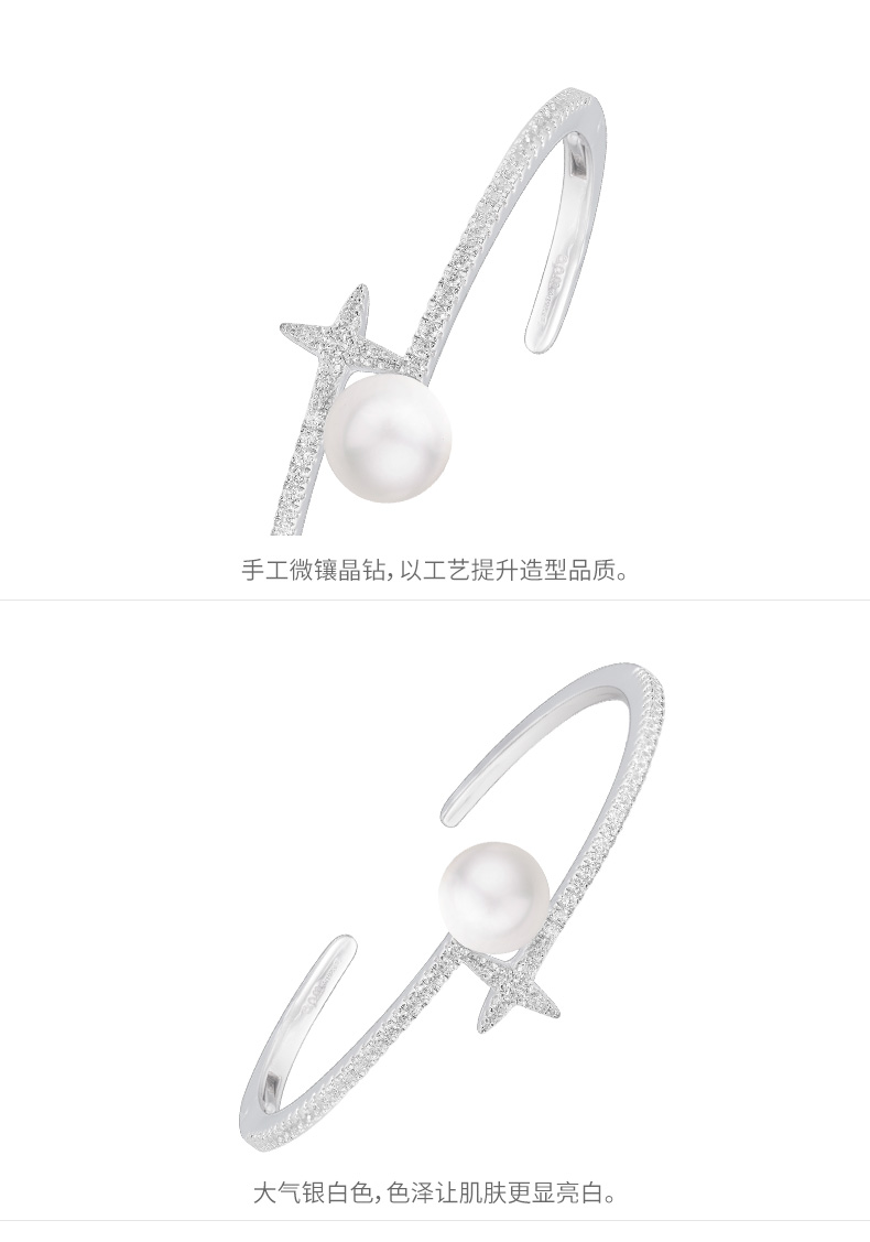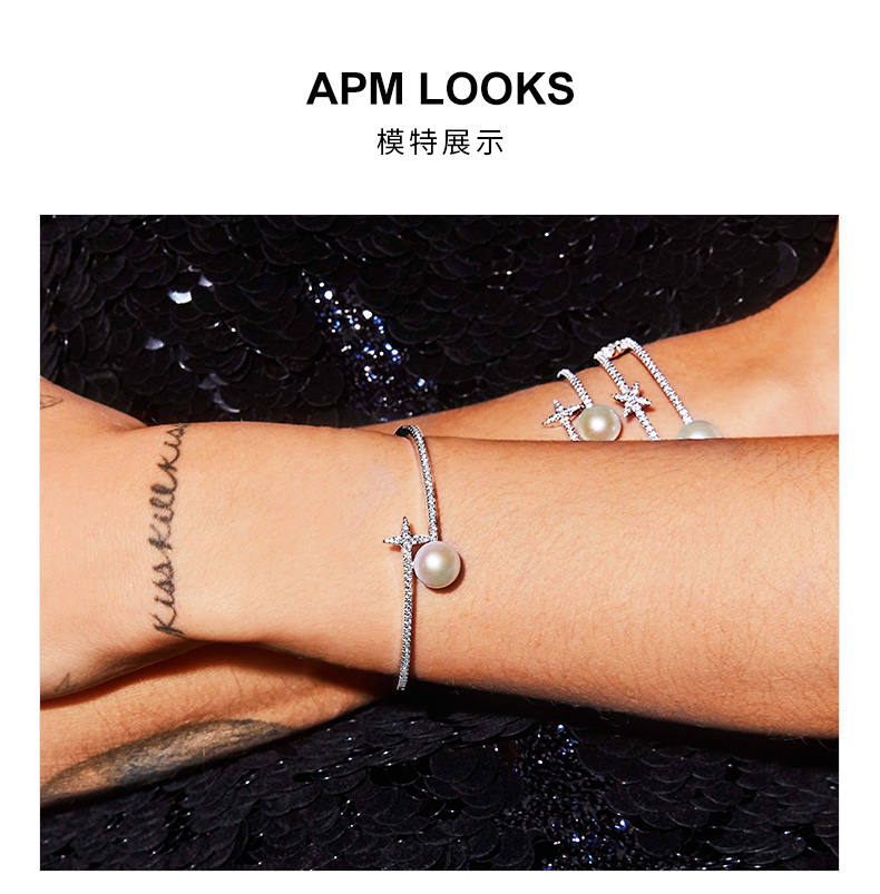 【授权商品】APM Monaco珍珠开口手镯新款饰品 气质银首饰母亲节礼物