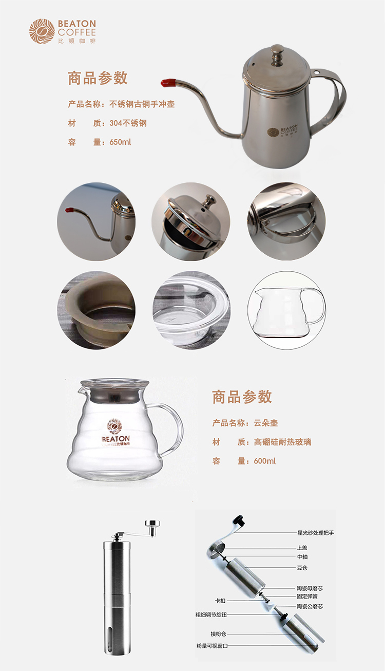 手冲壶礼盒手冲滴漏玻璃滤杯滤壶过滤纸咖啡豆磨豆机套装