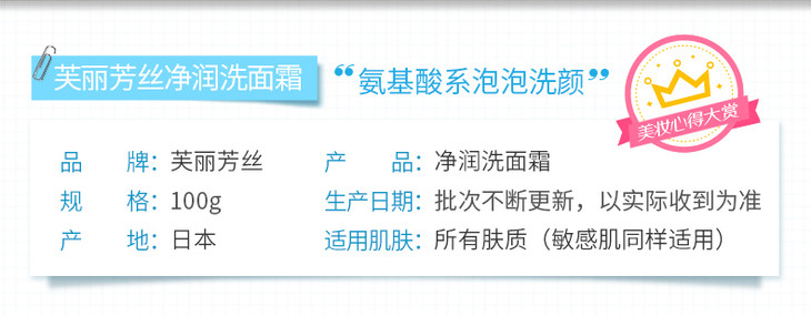 【香港直邮】【温和不刺激拒绝毛孔粗大】日本 freeplus芙丽芳丝氨基酸洗面奶100g 净润保湿泡沫洁面乳