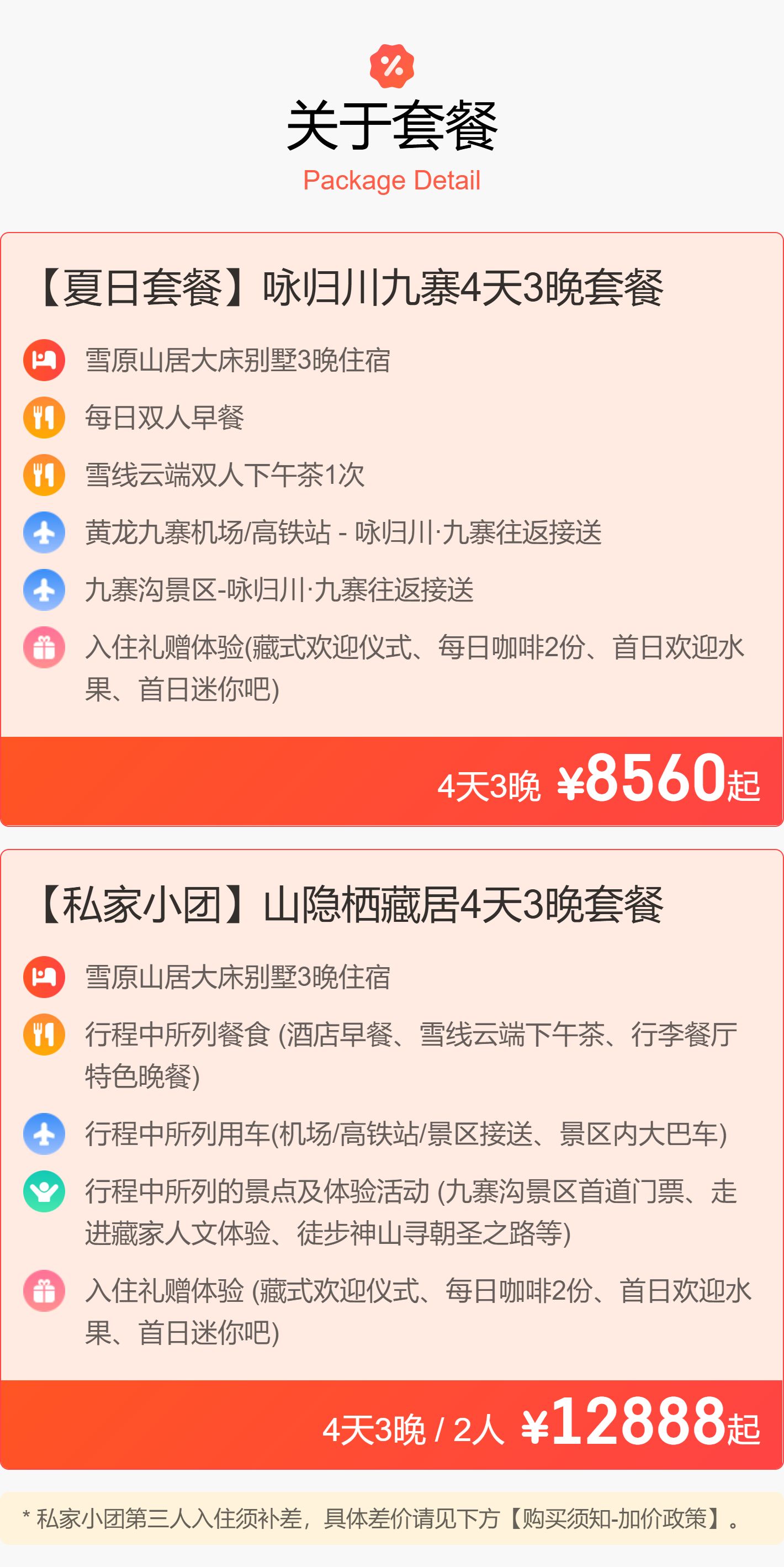 4天3晚【咏归川·九寨度假酒店】暑期可用!夏日套餐/私家小团行程可选!含专车接送机、下午茶、每日咖啡、藏式欢迎仪式,打卡九寨沟景区&体验藏地人文,感受九寨隐世秘境之内的地方藏寨美学~