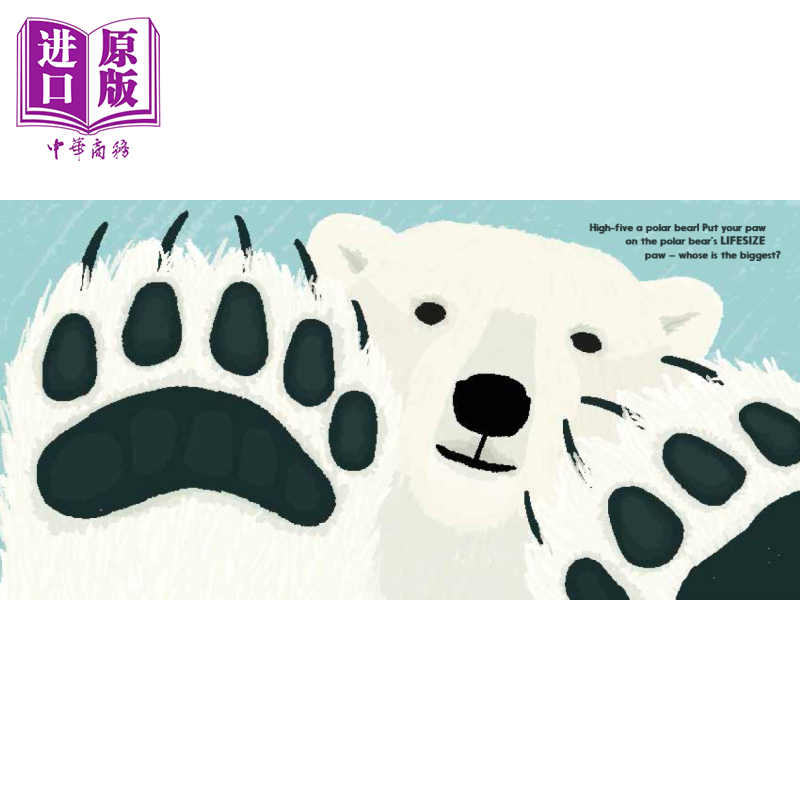 与一只北极熊击掌,看看谁的爪子至大,透过模切看看你长着一只巨大的乌贼眼会是什么样子。这部互动式非小说冒险游戏以世界上一些至小和至大动物的 真人大小插图为特色,并邀请孩子们将自己的身体部位与这些神奇的动物进行比较。