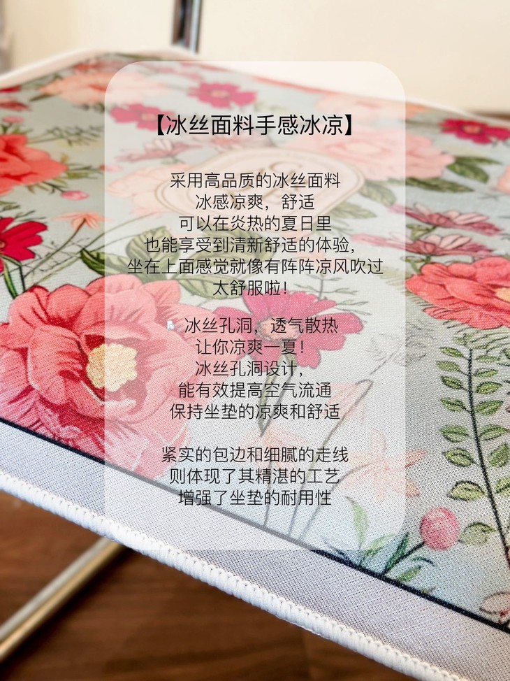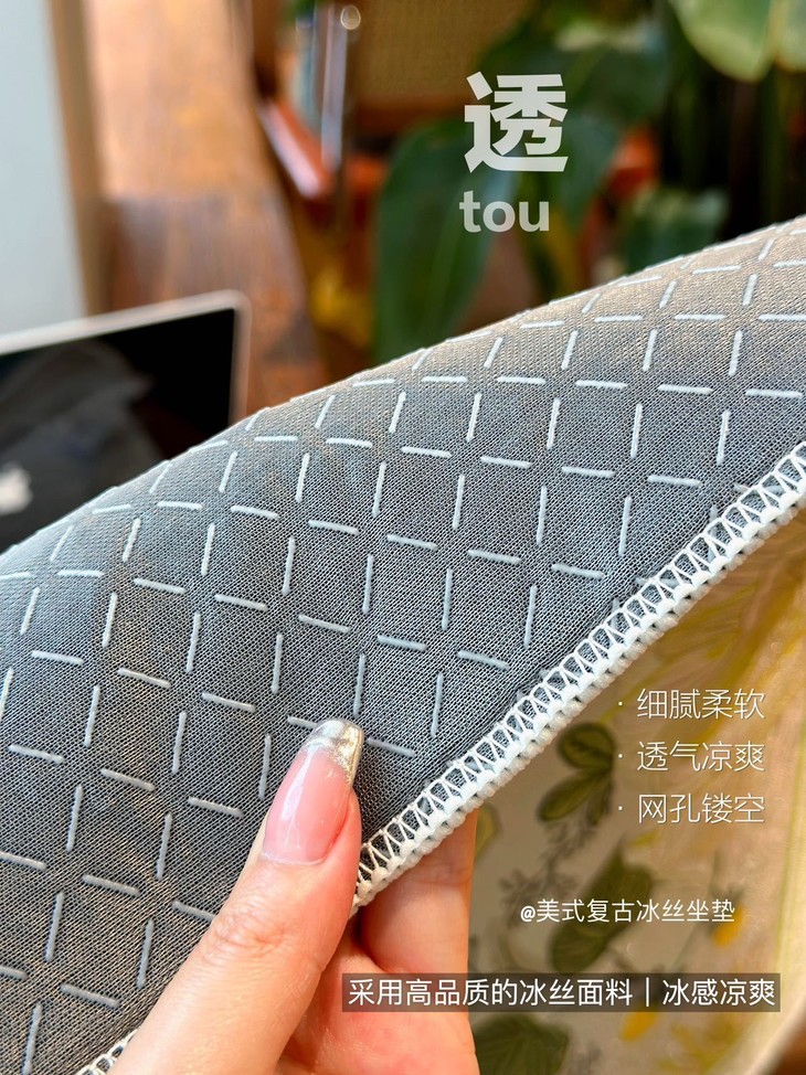 美式系列则充满了浪漫与温馨 这个坐垫的材质真的是太棒了! 采用高品质的冰丝面料 冰感凉爽,舒适可以在炎热的 夏日里也能享受到清新舒适的体验 坐在上面感觉就像有阵阵凉风吹过 太舒服啦!