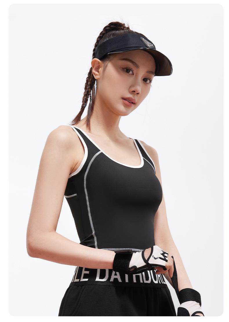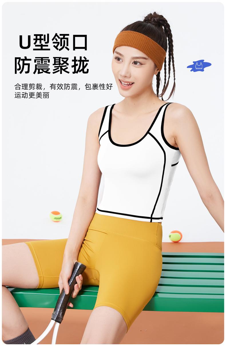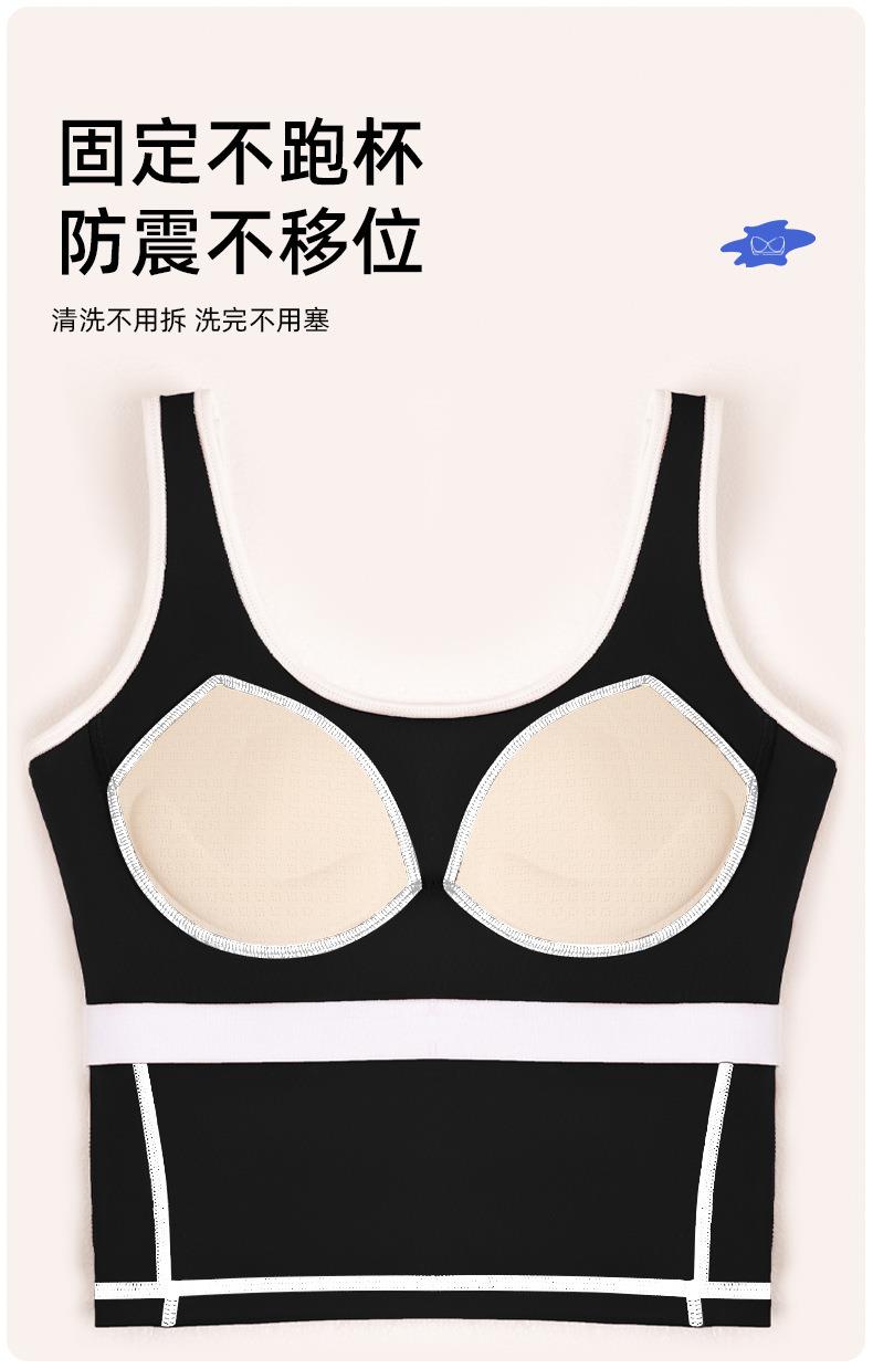聚衣堂撞色速干弧线背心一体式固定防震聚拢U型高弹显胸运动背心