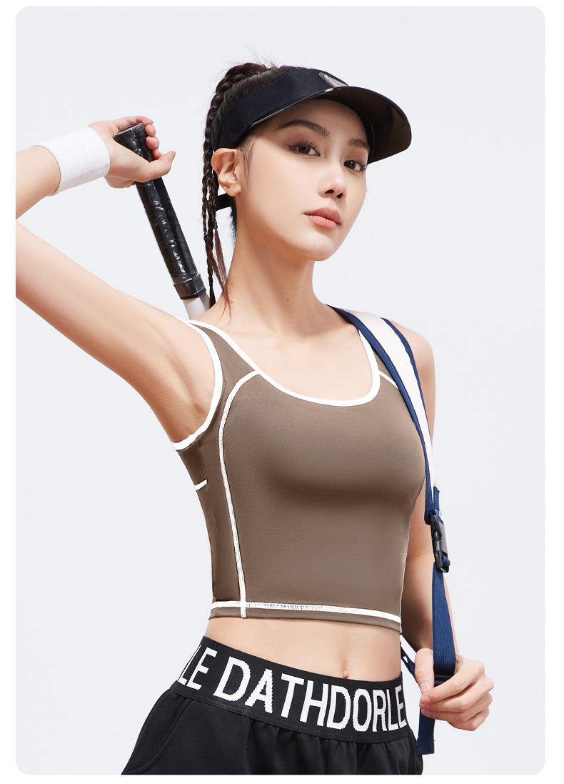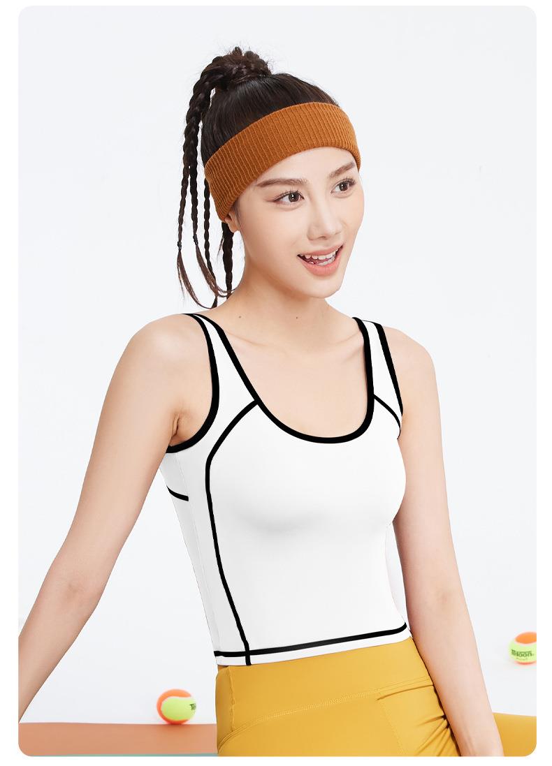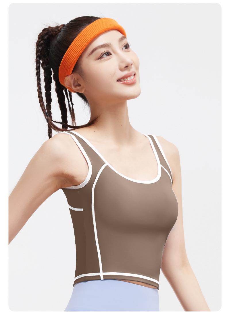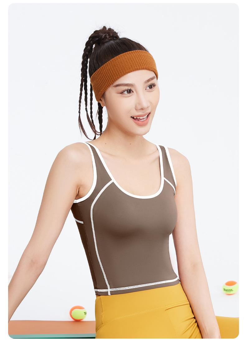 聚衣堂撞色速干弧线背心一体式固定防震聚拢U型高弹显胸运动背心