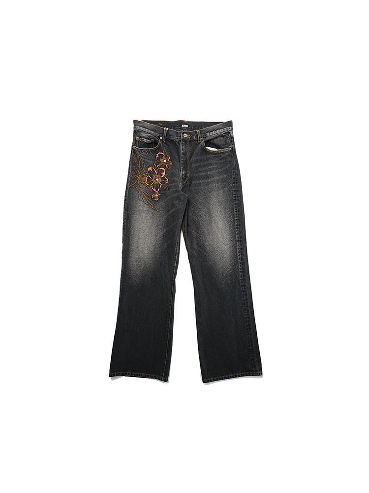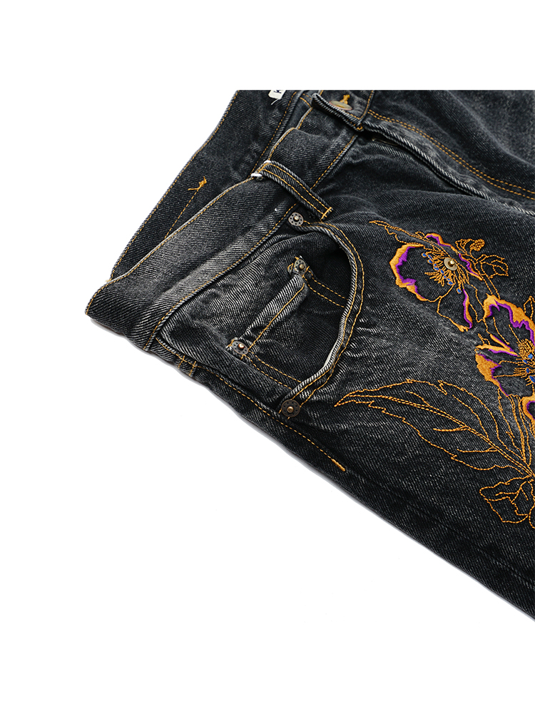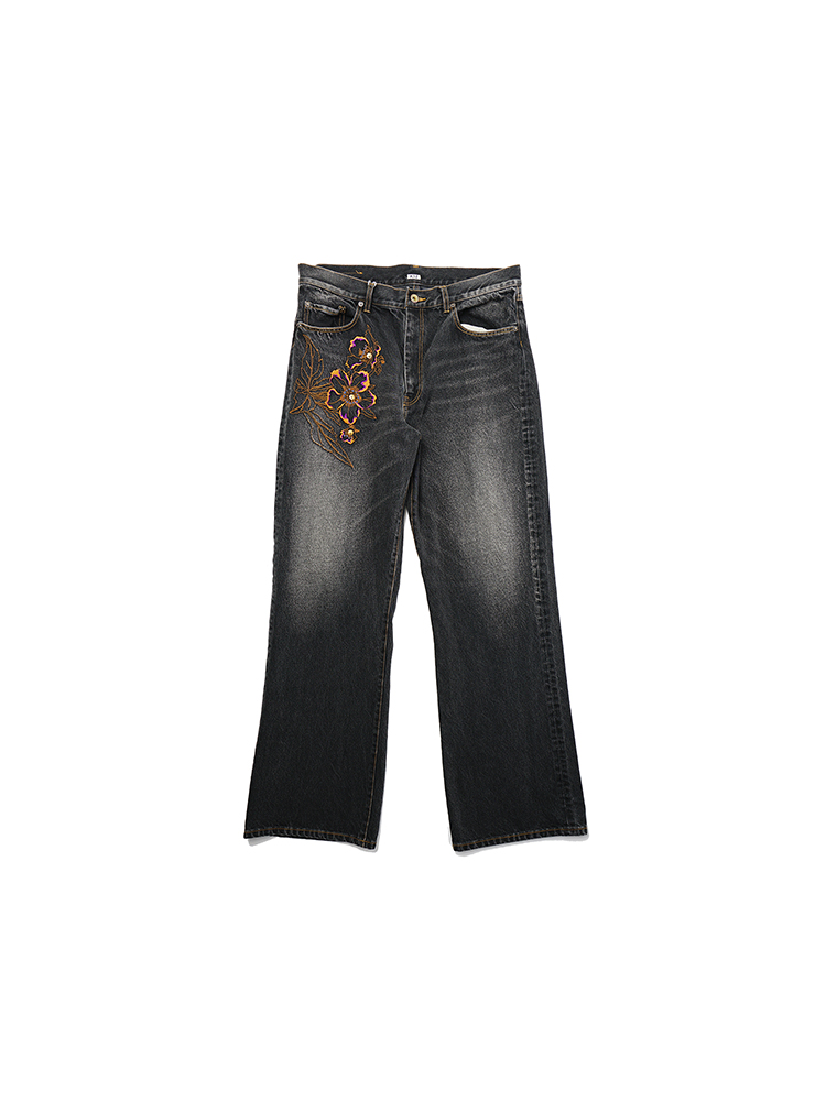 KHOKI Embroidered design denim pant 手工刺绣牛仔阔腿裤