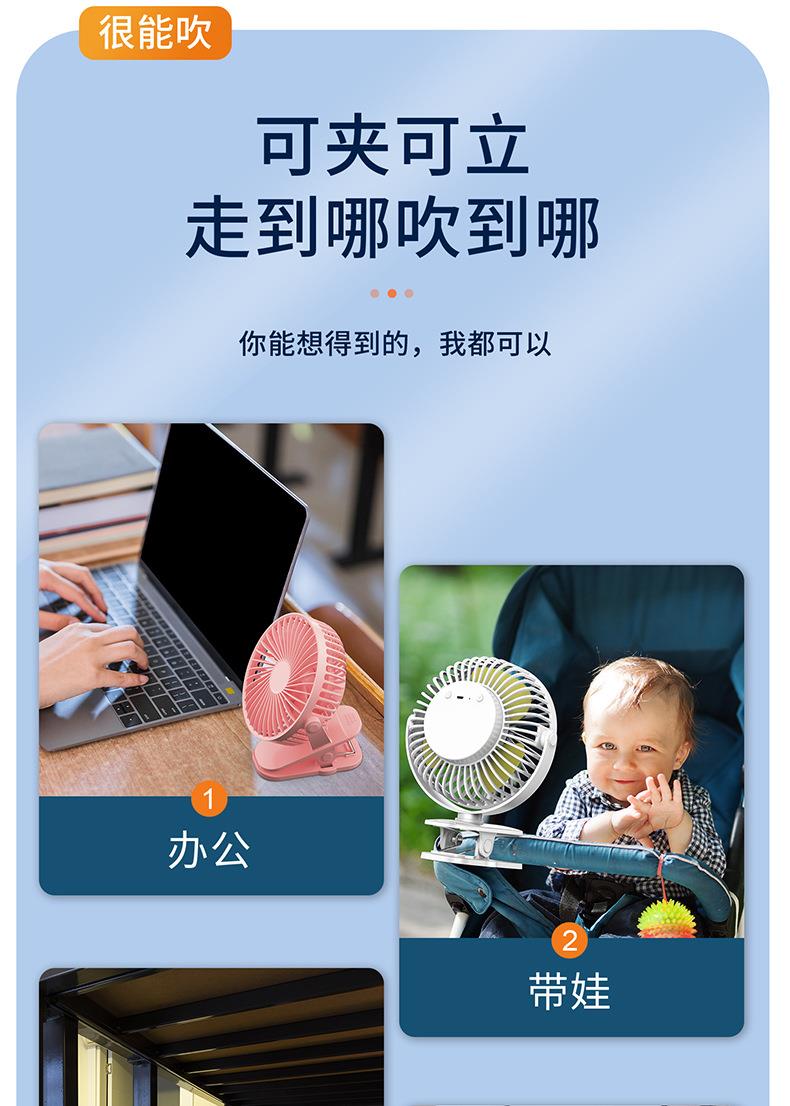 6寸大风力USB夹子风扇4寸充电迷你静音办公室宿舍台式小型电风扇