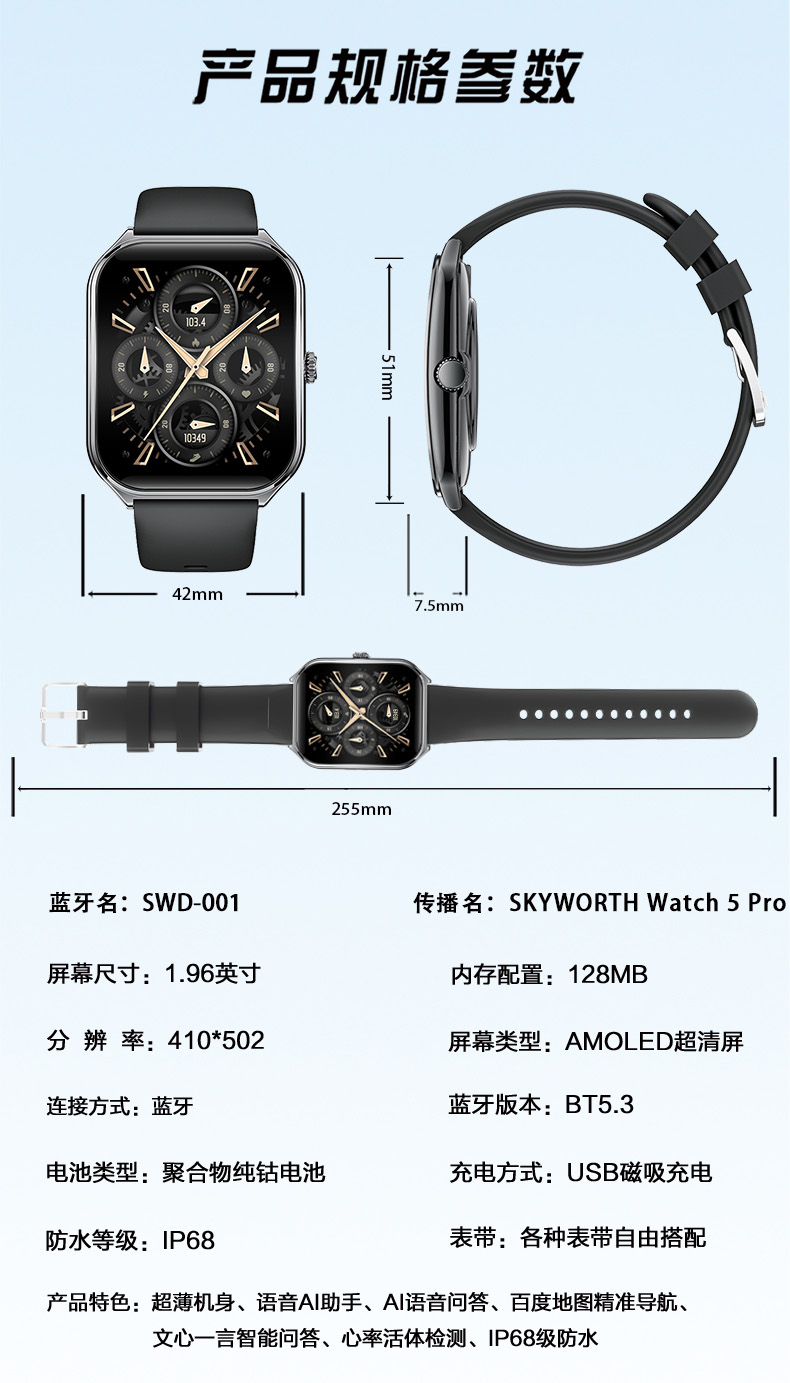 疯抢中!!【春节不打烊】【下单即送两条表带】【中国500强 创维Watch 5 Pro智能手表】超薄表盘 佩戴舒适 Ai问答/地图导航/运动/健康监测等多功能 礼盒包装