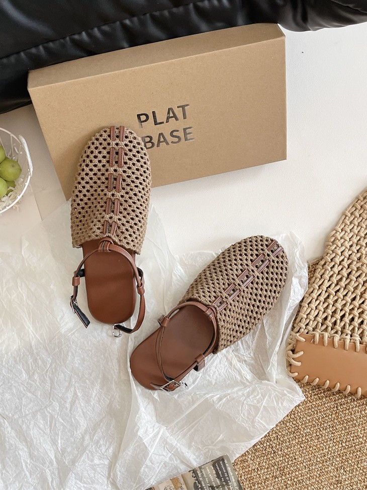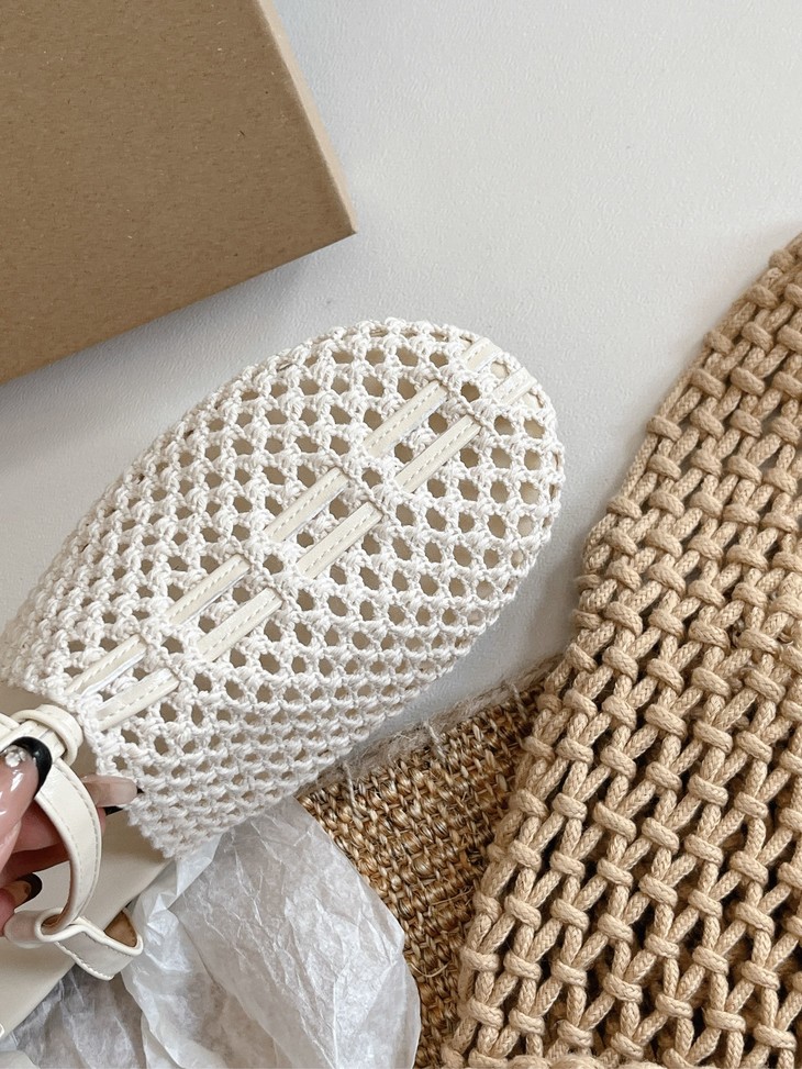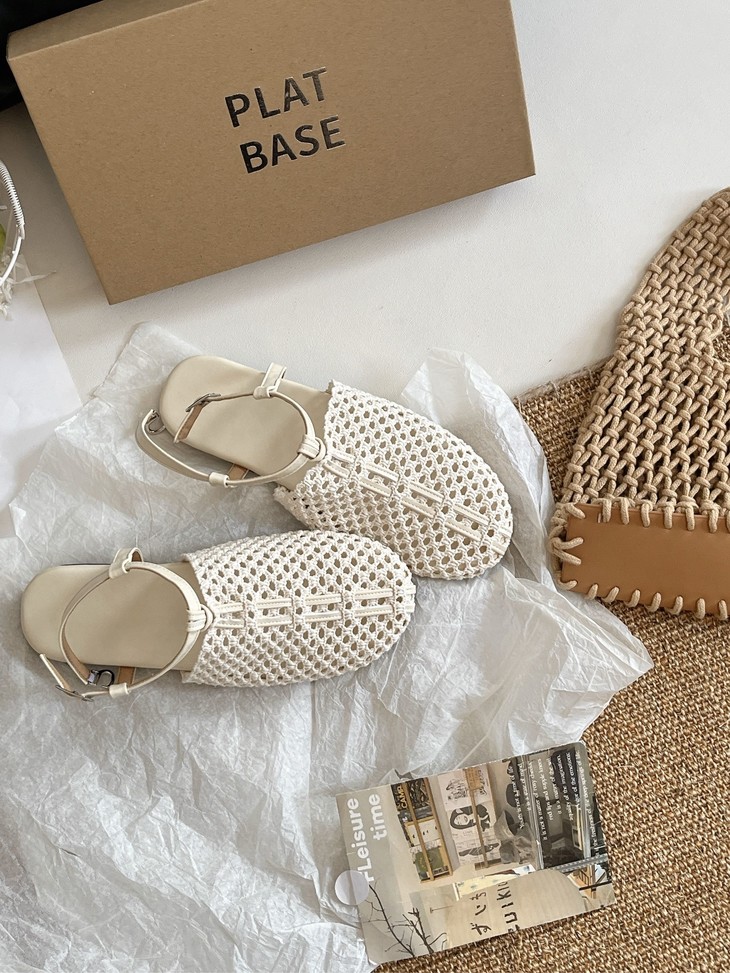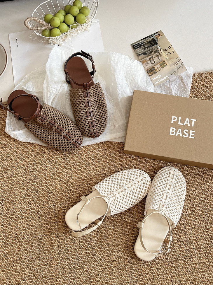 🌈【品牌直发】软底软面❗小众又很有设计感❗【PlatBase欧韩极简复古针织罗马凉鞋】🖤环保皮➕法式双排针织网面,🌸自带设计感的平底编织凉鞋,太美辣