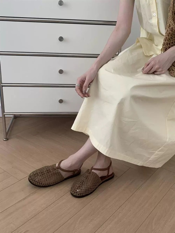 ‼️两个颜色甜美暴击,穿出去被韩国小姐姐追问品牌 编织镂空竟比凉鞋还透气!汗脚星人狂喜 「懒人福音」韩系呼吸美学: 手工编织镂空+质感内衬 每一步都像踩着济州岛的海风 光脚穿出「会呼吸」的夏日松弛感