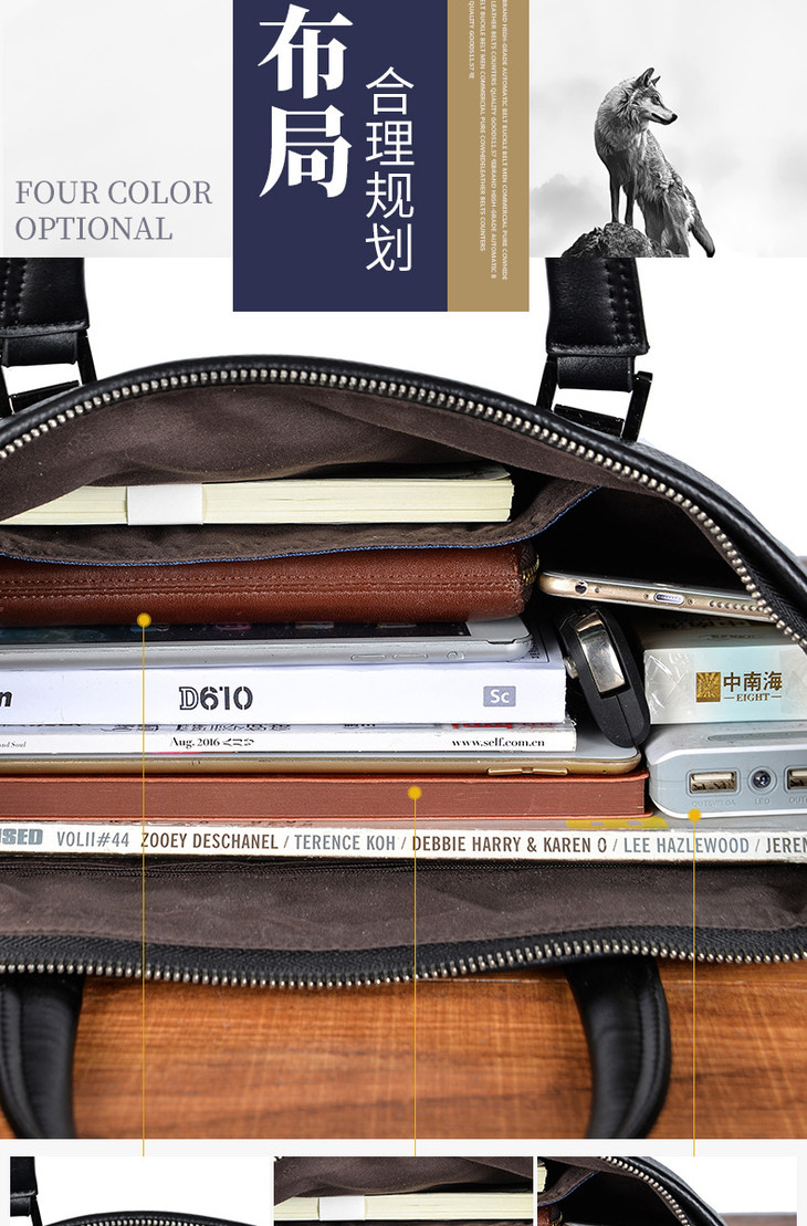 2019新品Septwolves/七匹狼手提包男士男包牛皮包商务皮包横款公文包 黑色1A4974155-01