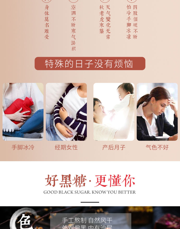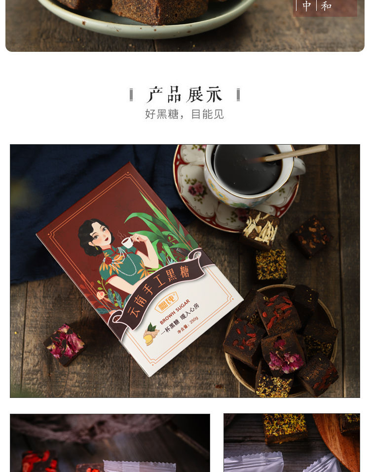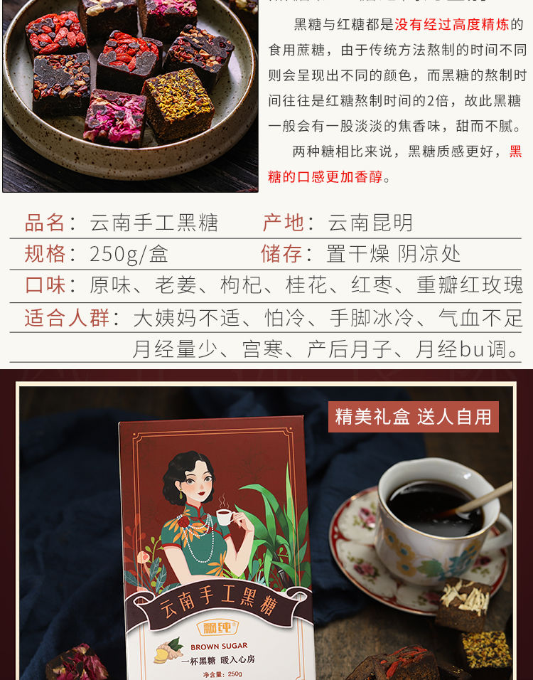 【爆款超低价预售 急单慎拍】云南古法黑糖红糖姜茶大姨妈月子手工甘蔗老红糖块黑糖块250g/盒