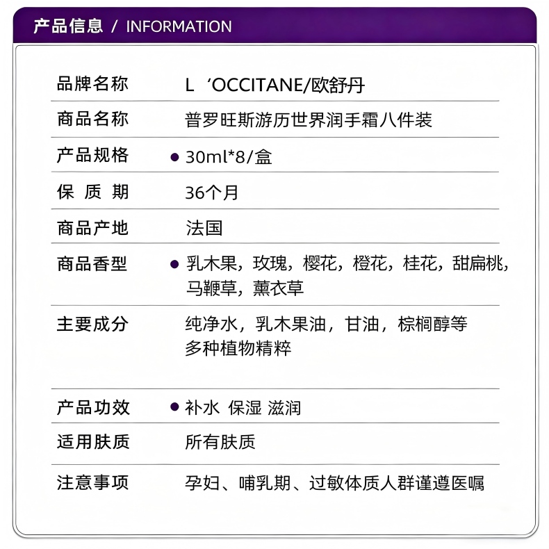L'OCCITAN欧舒丹护手霜八件套 经典版 新旧包装随机发 自用 送礼 伴手礼-27.7效期