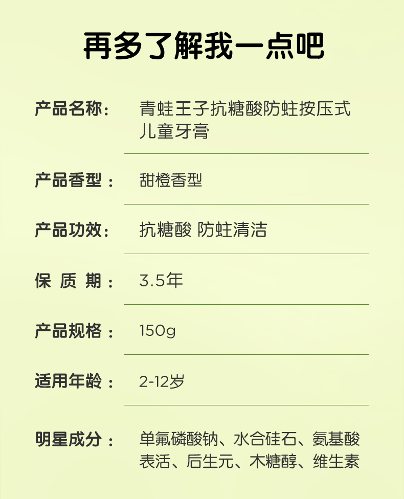 青蛙王子抗糖酸防蛀儿童牙膏(甜橙)150g(251031)