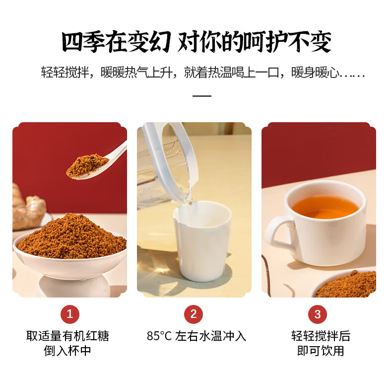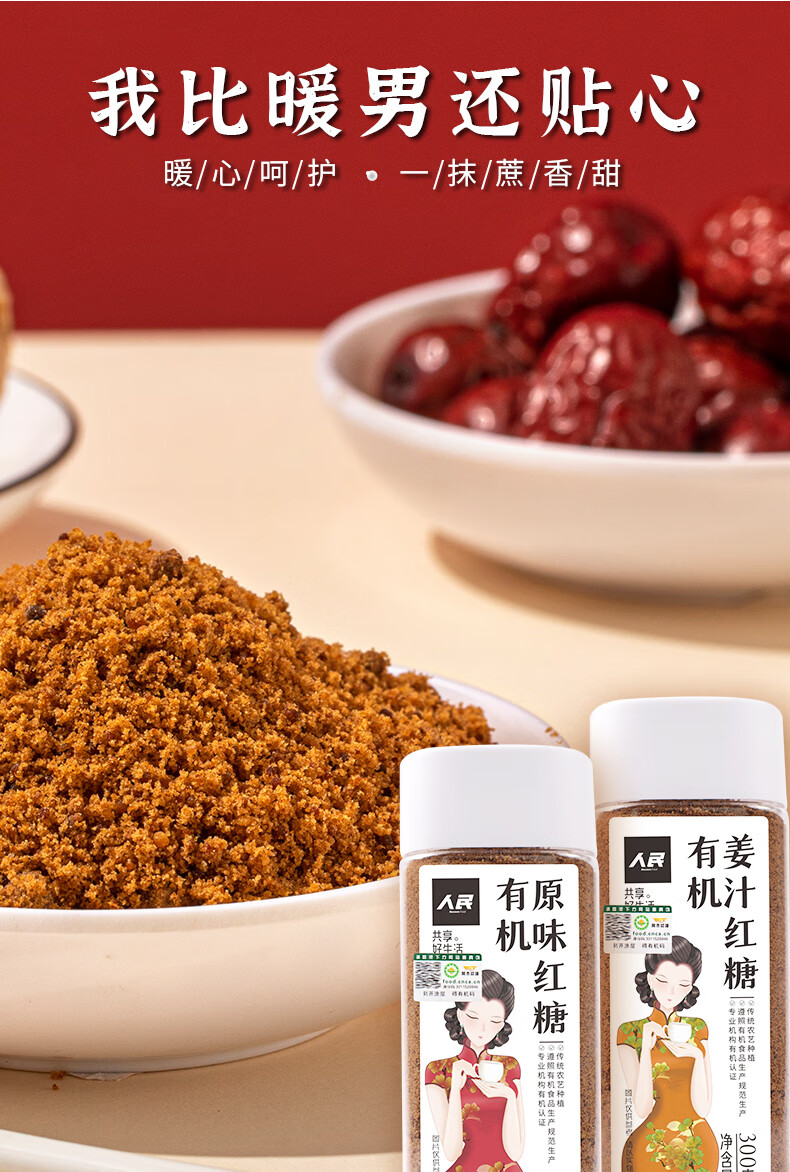 人民食品瓶装有机红糖原味生姜红枣汁红糖300g