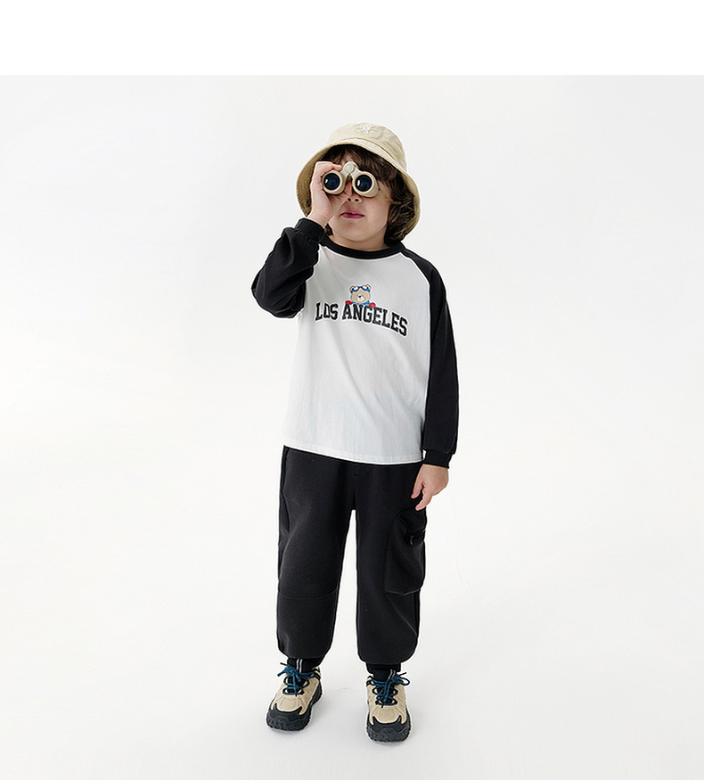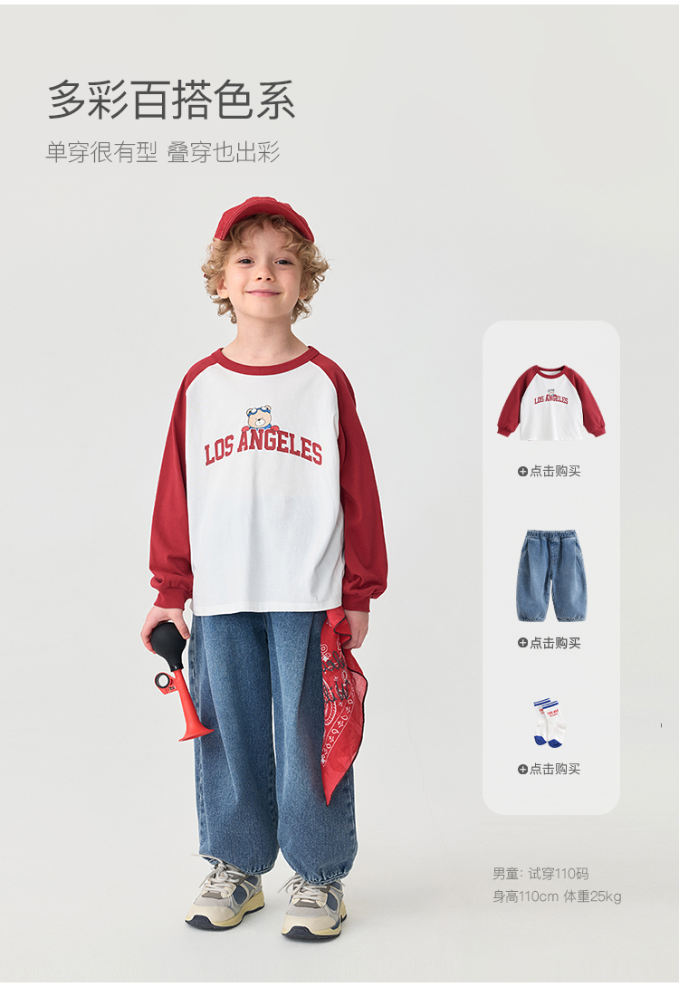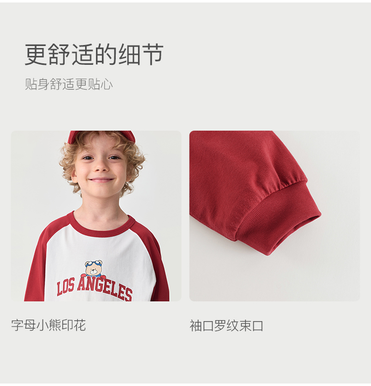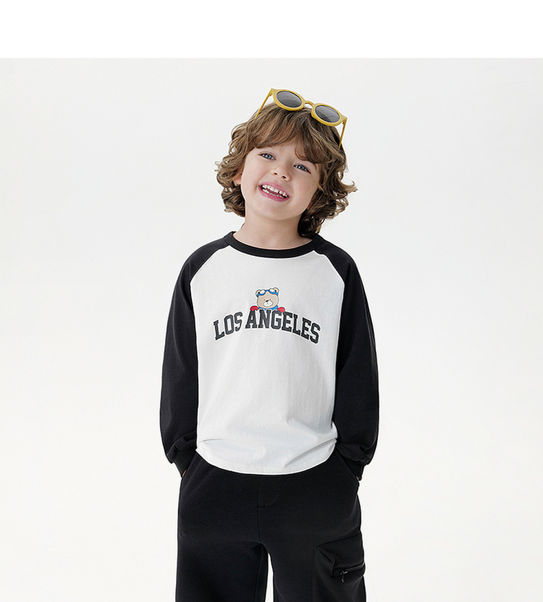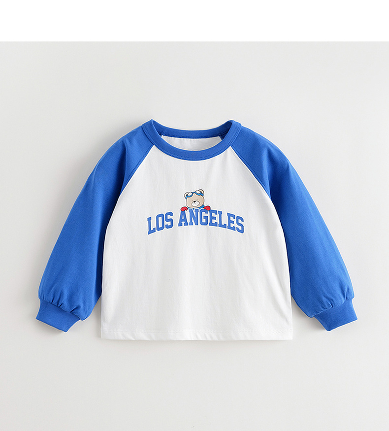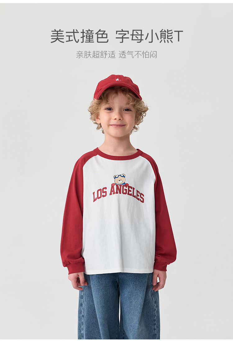 马克珍妮男童美式复古字母小熊T恤 宝宝长袖上衣秋装新款551123