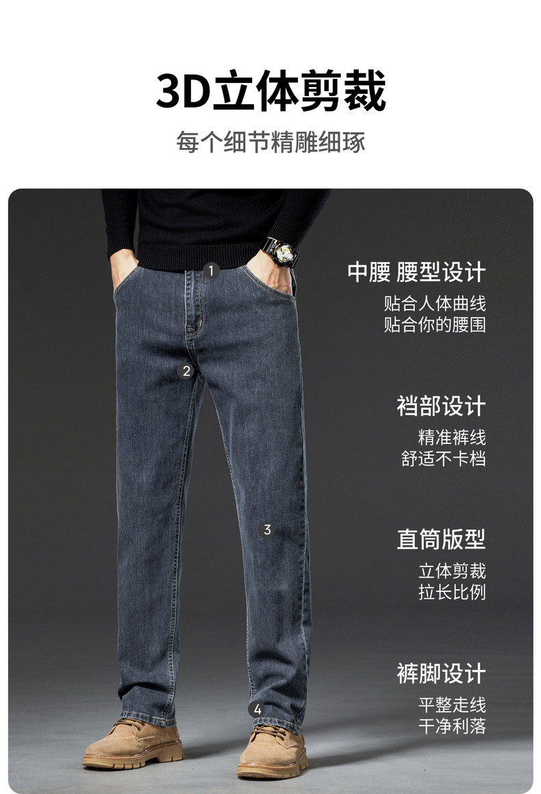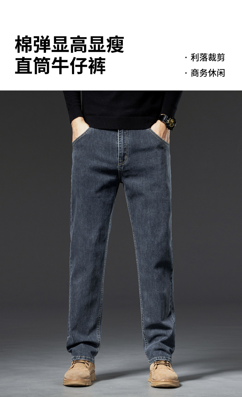 【含棉】圣得西男士牛仔直筒裤2025秋季新款弹力扛皱耐磨百搭长裤