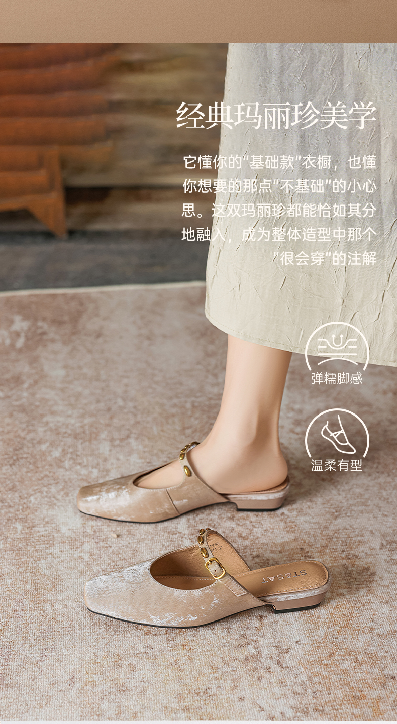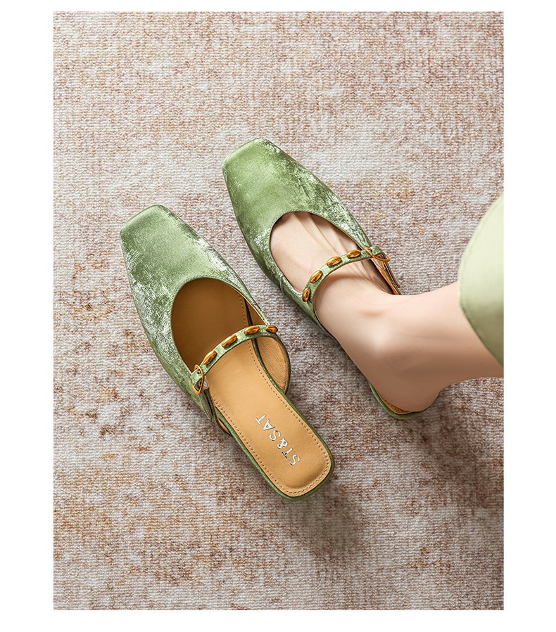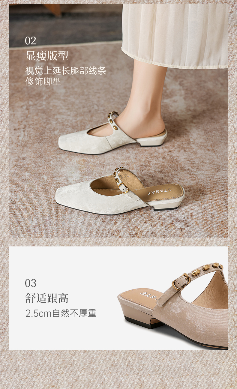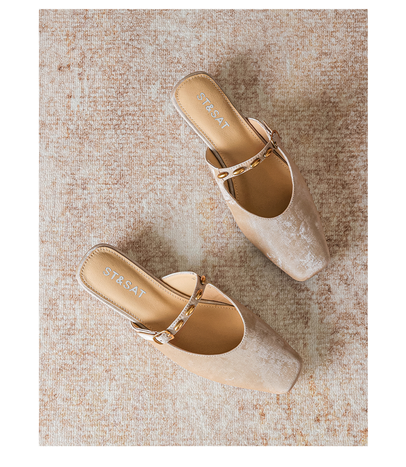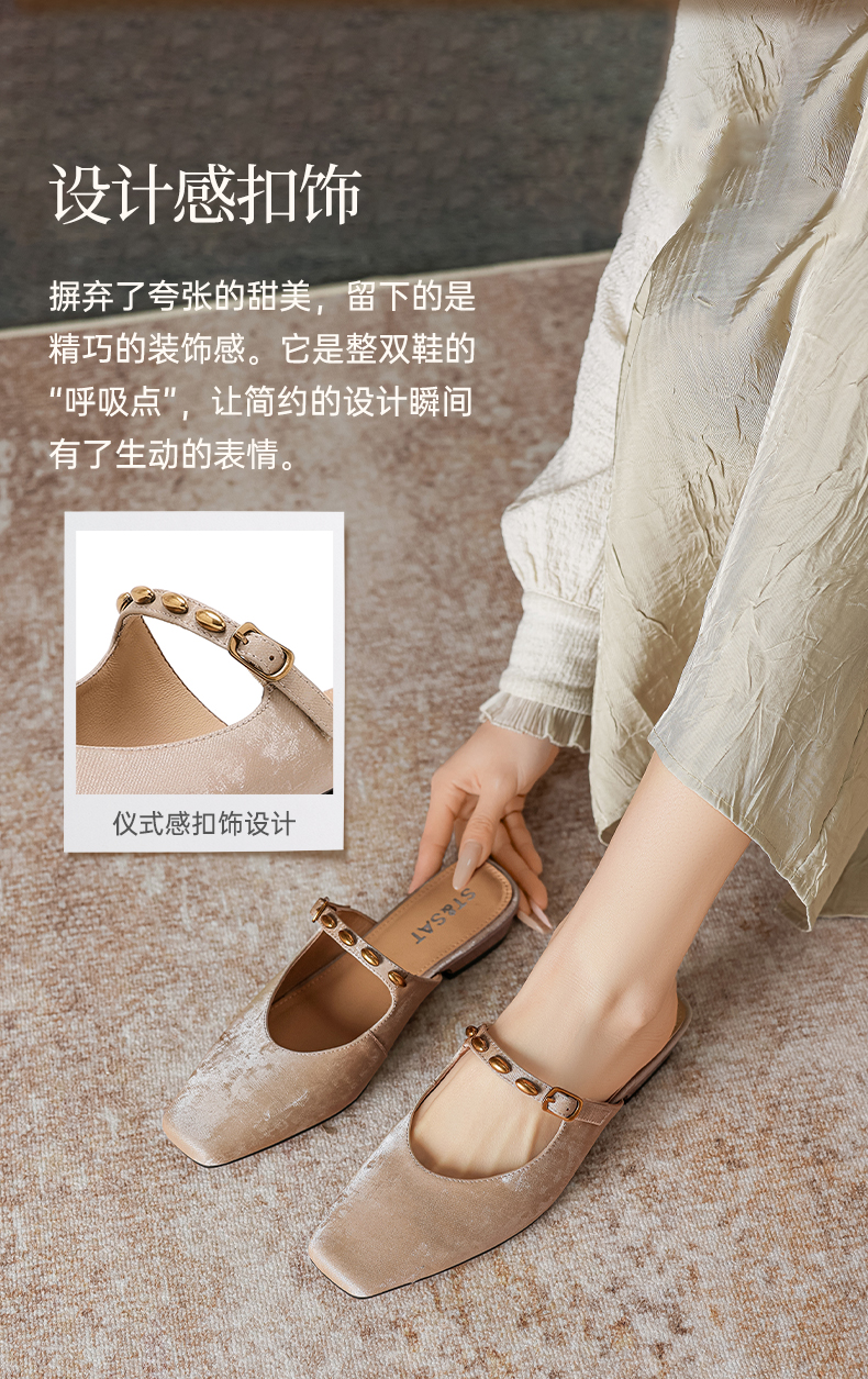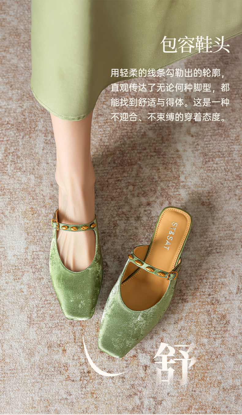 星期六26夏新款优雅绒面通勤粗跟穆勒拖SSE2111C9E