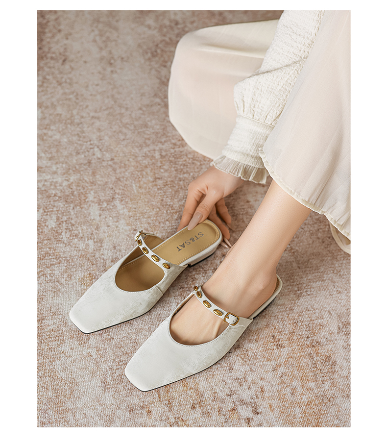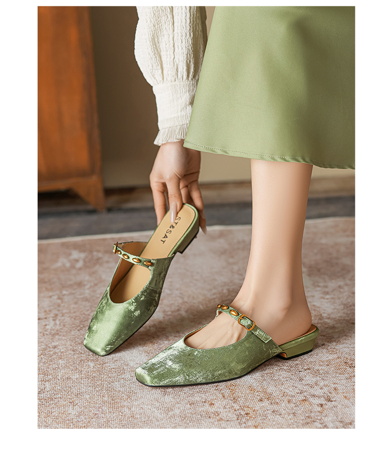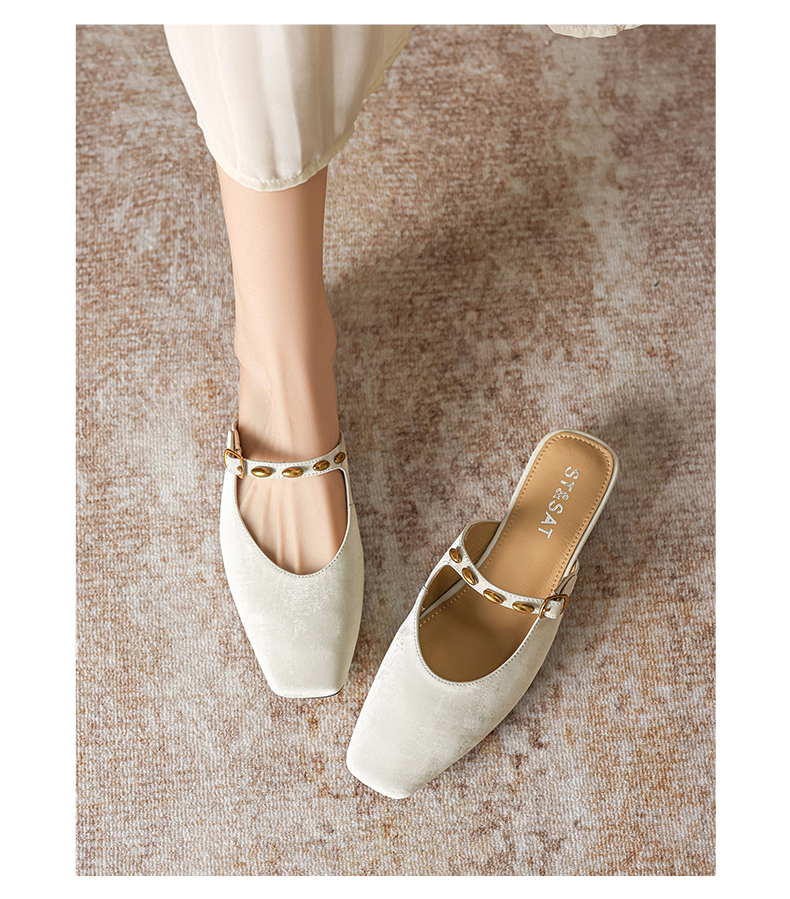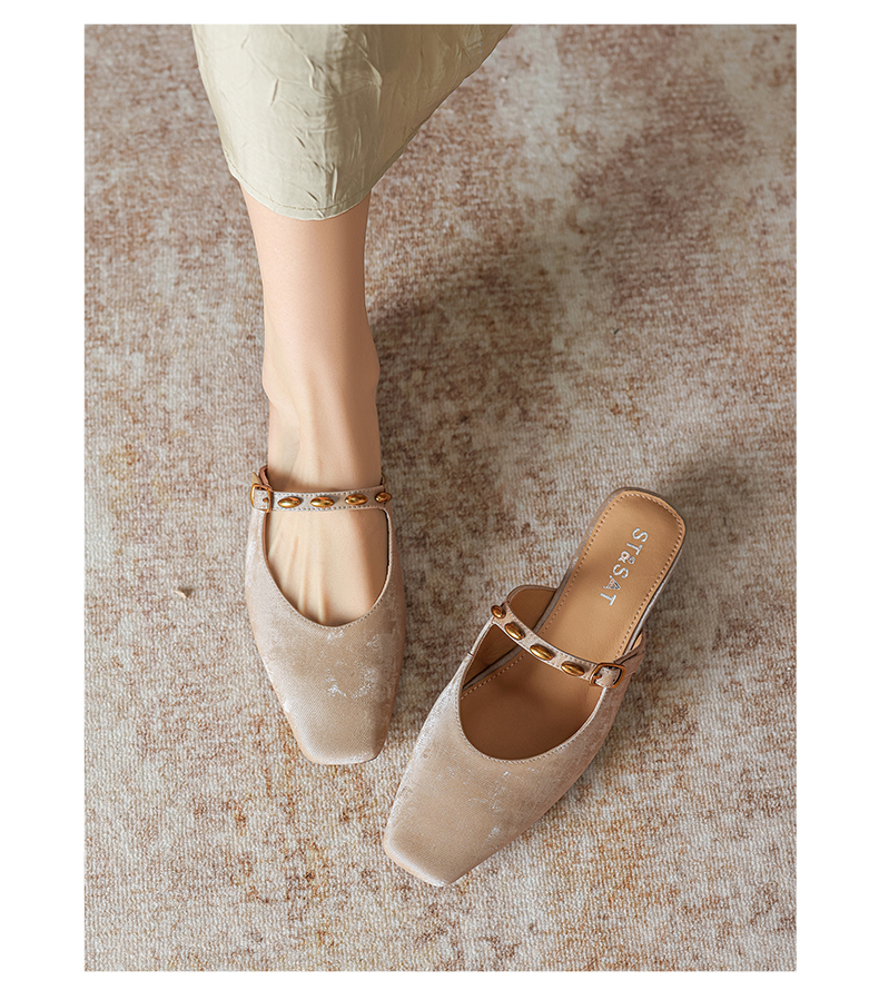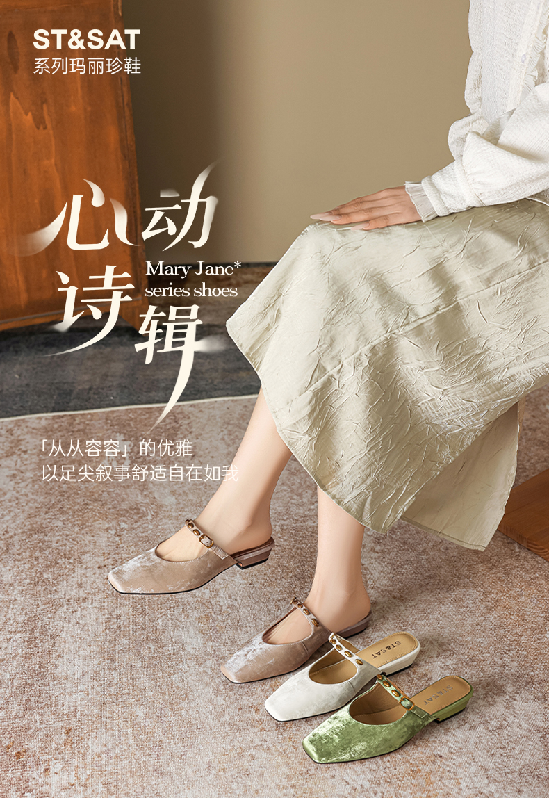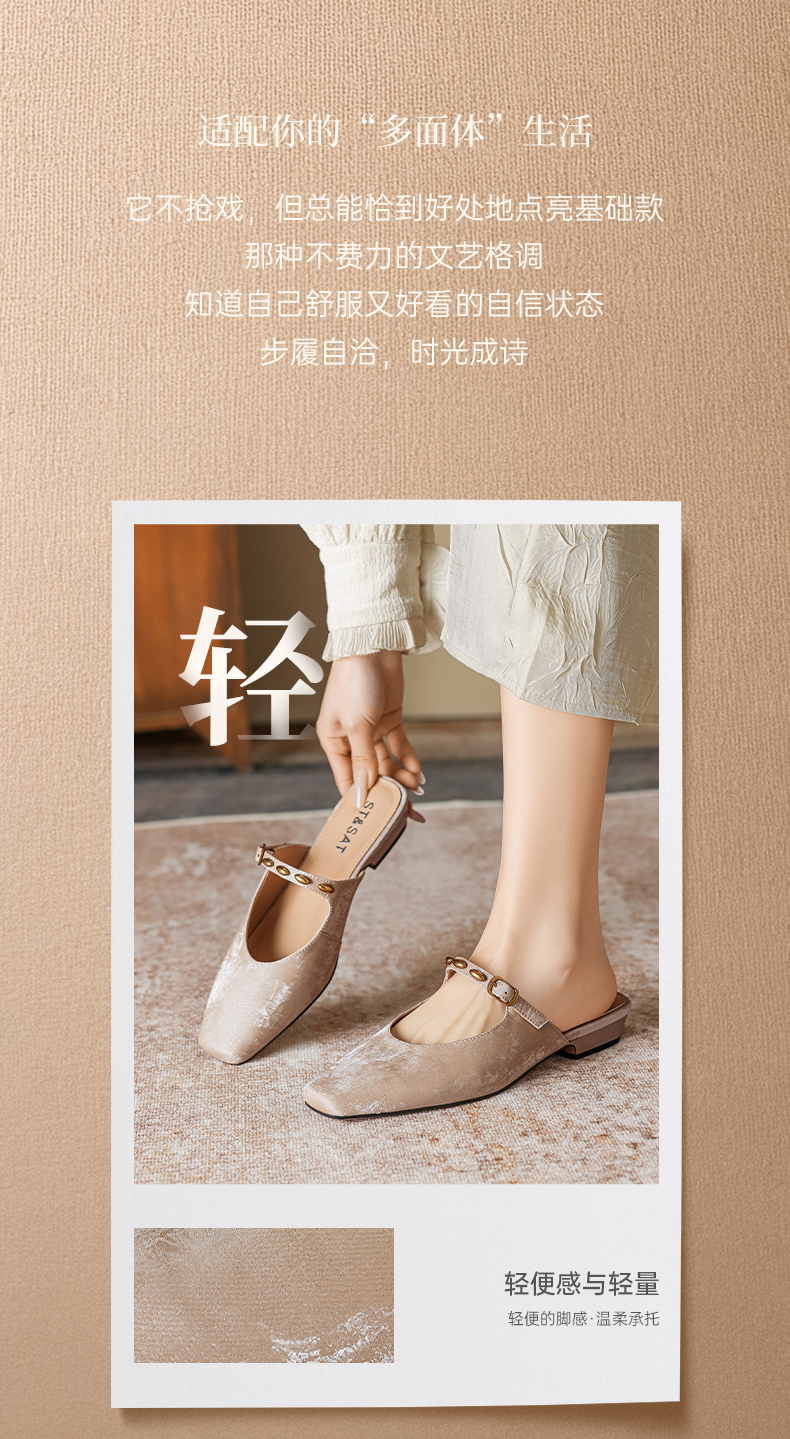 星期六26夏新款优雅绒面通勤粗跟穆勒拖SSE2111C9E
