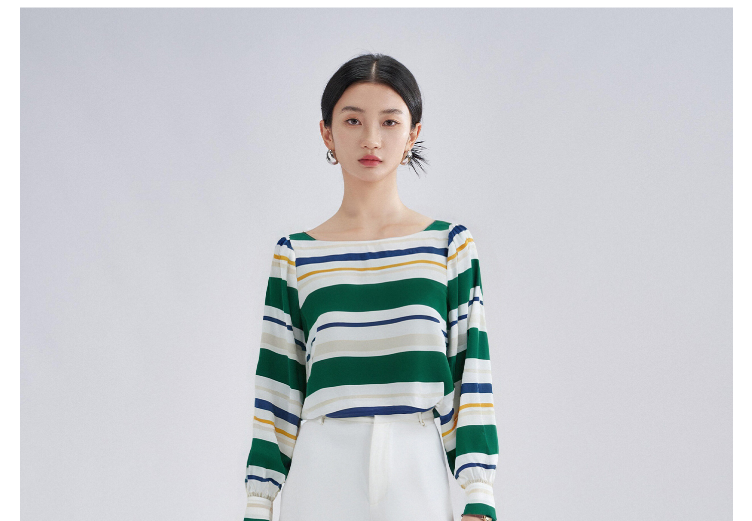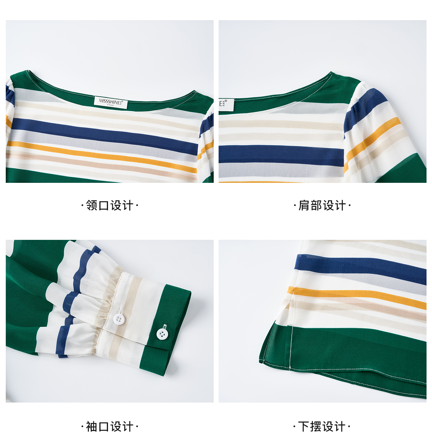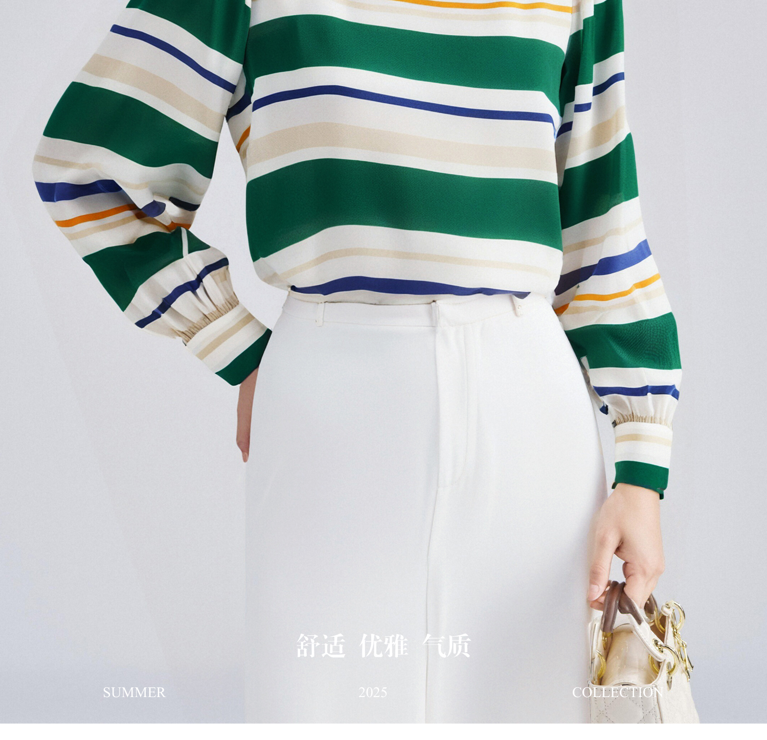 「彩条漫舞」桑蚕丝上衣 复古俏皮 女秋季经典条纹减龄百搭长袖小衫高级感4256
