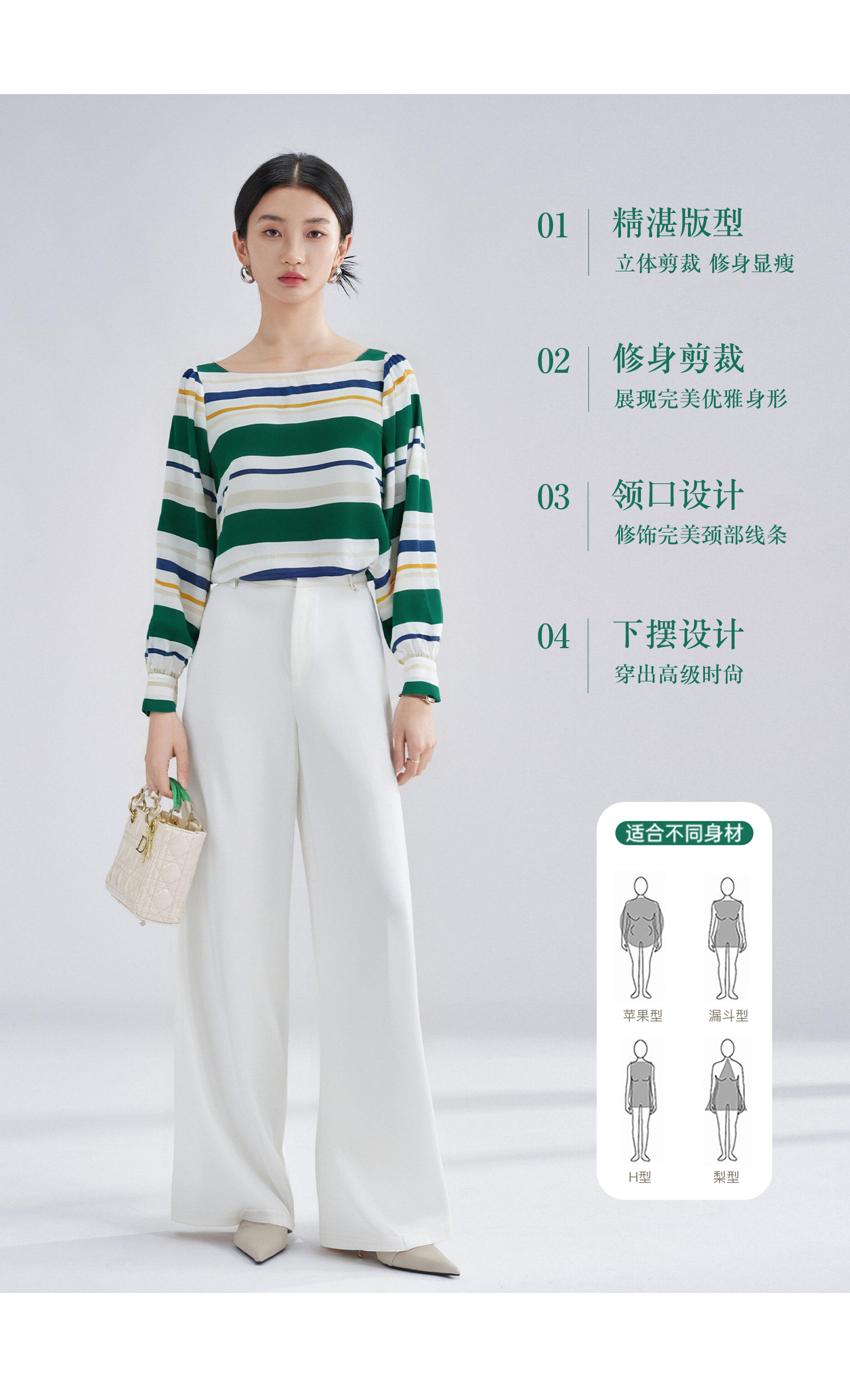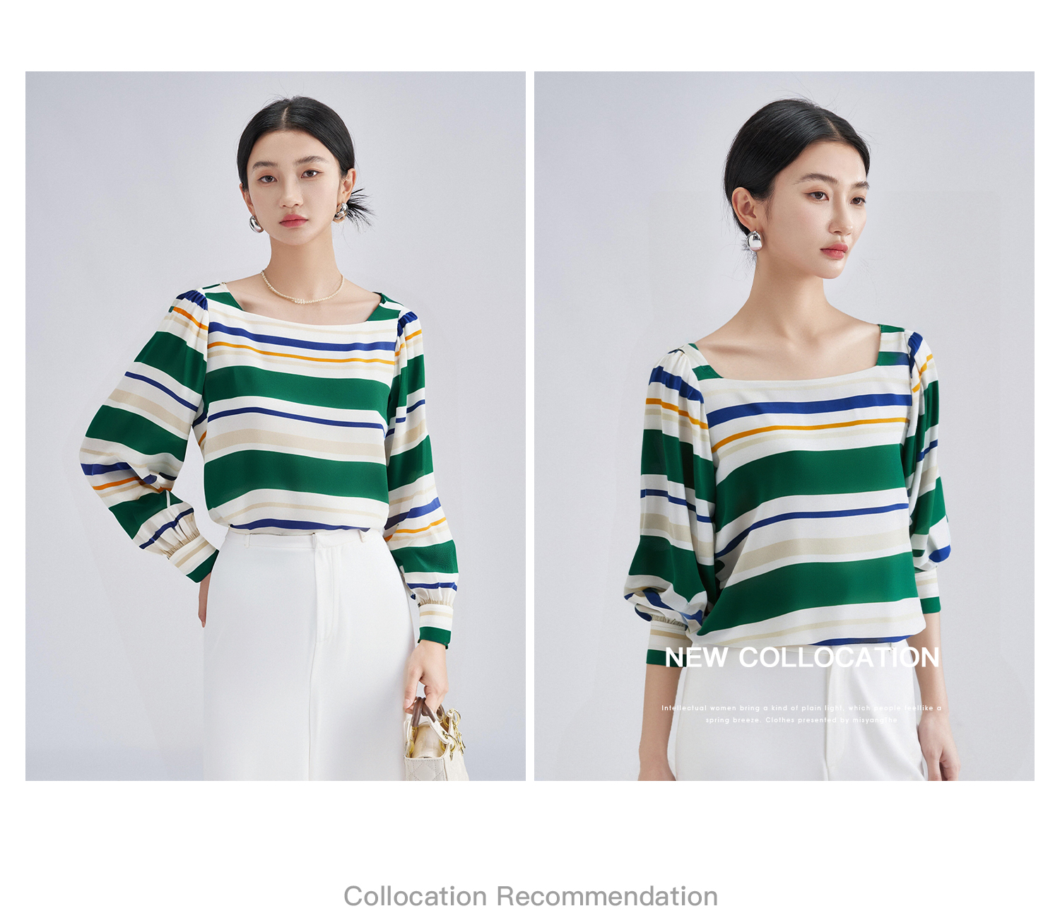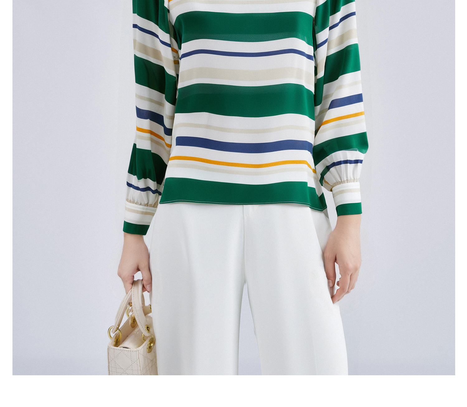 「彩条漫舞」桑蚕丝上衣 复古俏皮 女秋季经典条纹减龄百搭长袖小衫高级感4256