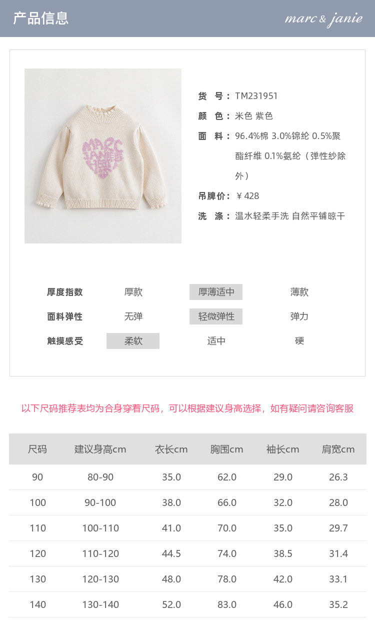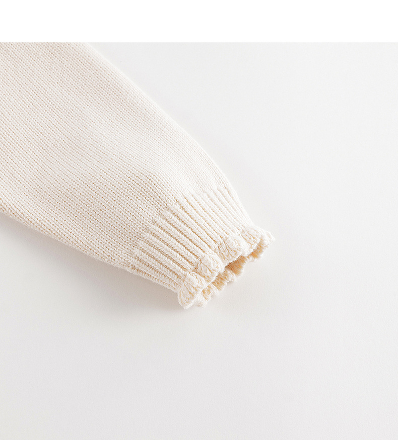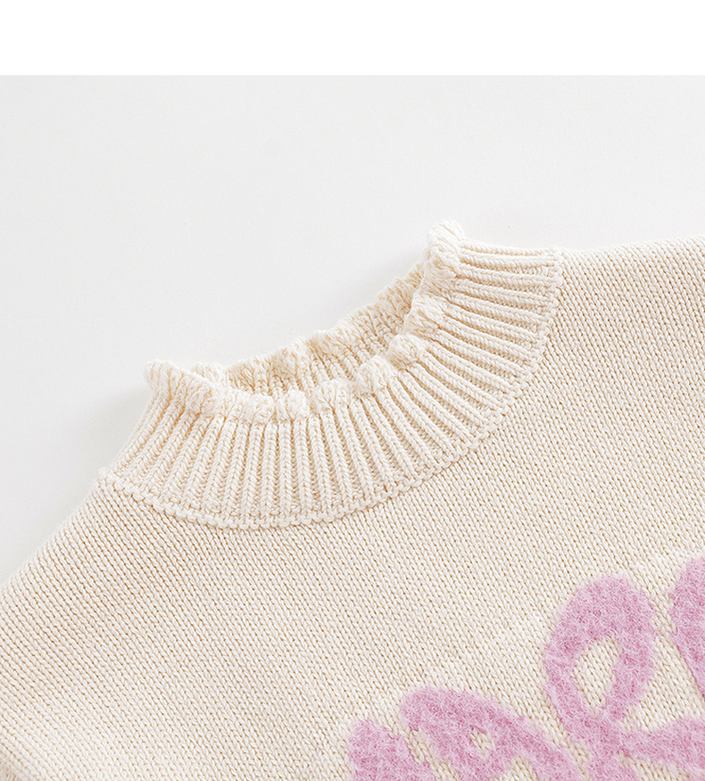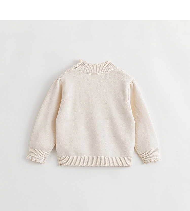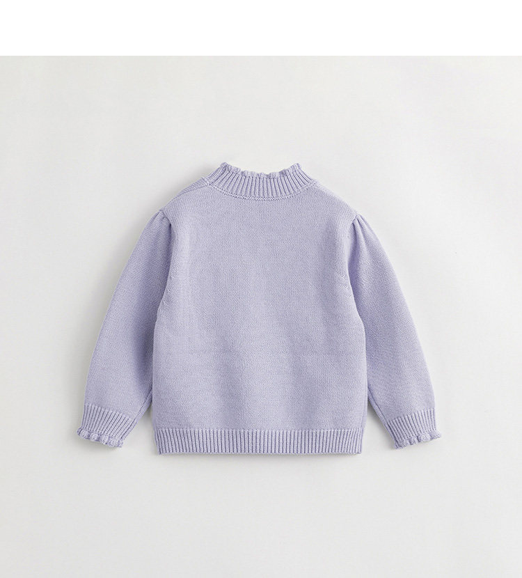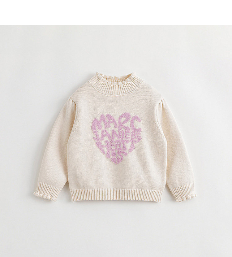 马克珍妮女童爱心提花针织衫冬装 儿童木耳花边半高领毛衣231951