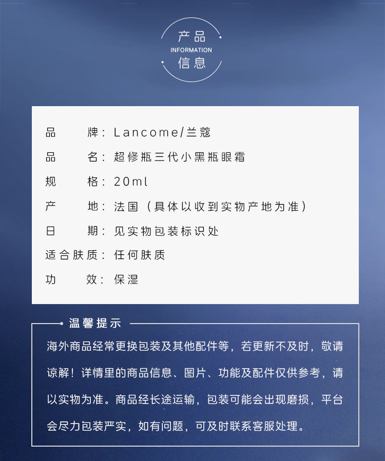 兰蔻超修小黑瓶发光眼霜20ML 新版三代