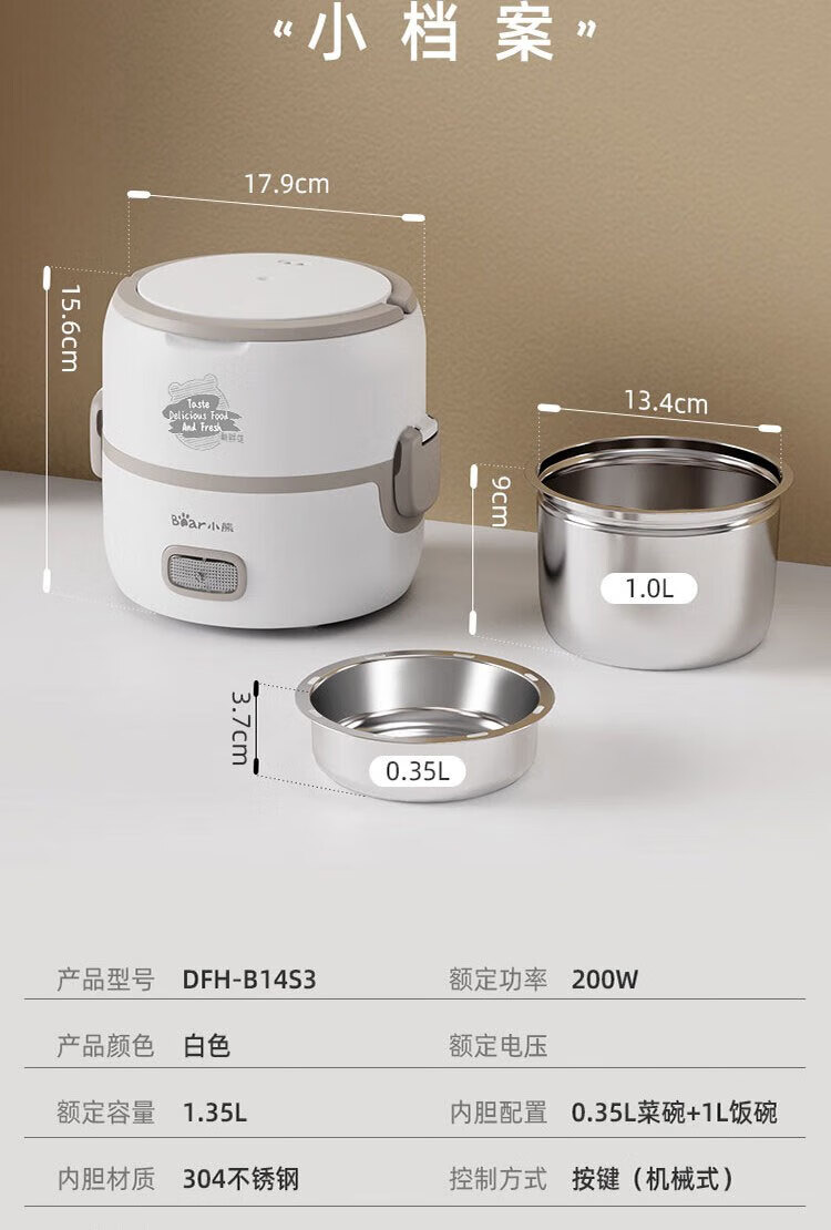 小熊电热饭盒DFH-B14S3【分仓直发,72小时发货,周末节假日不发货】