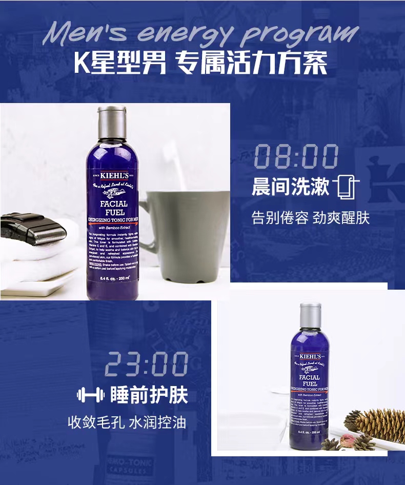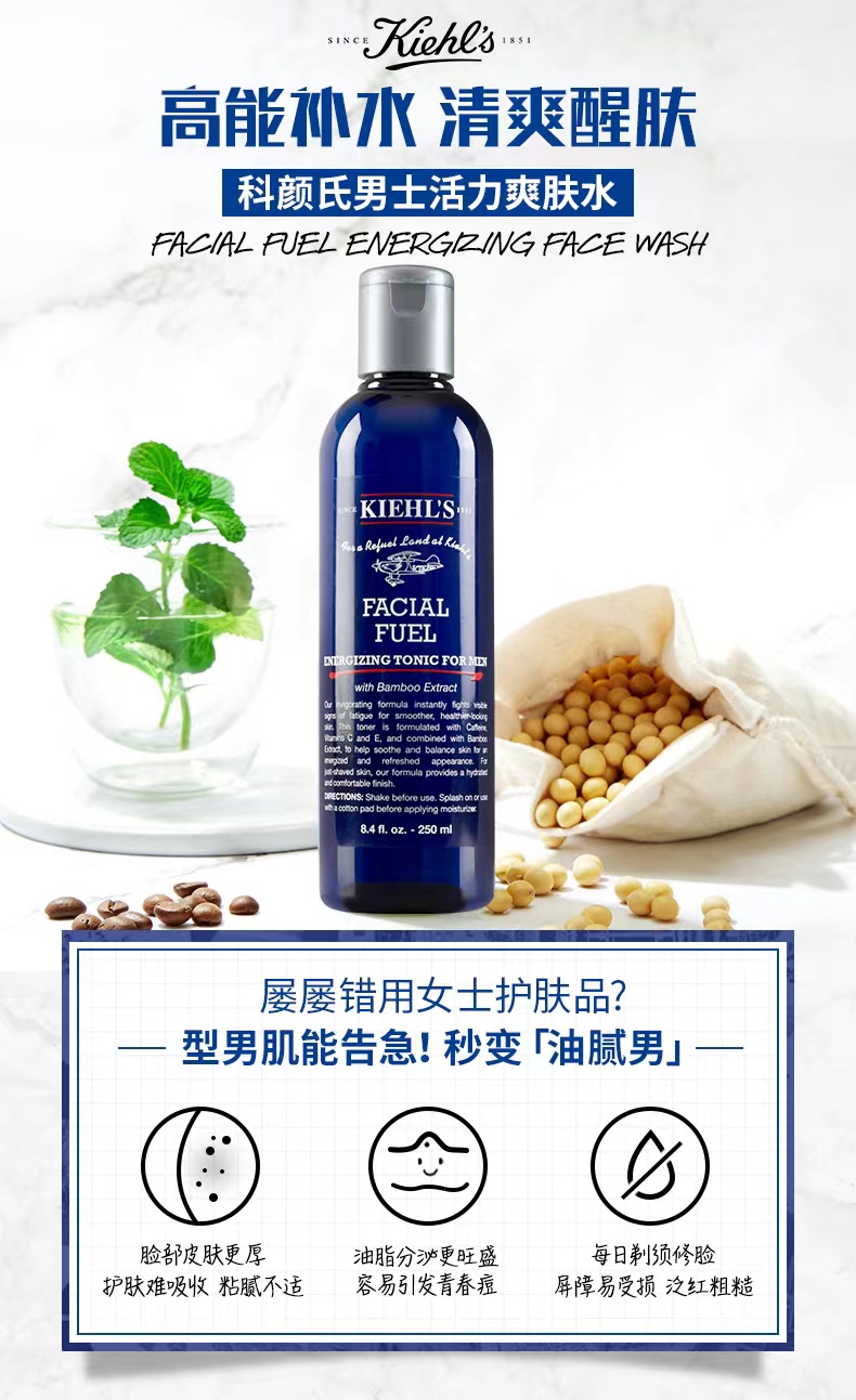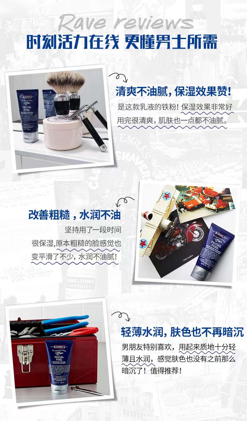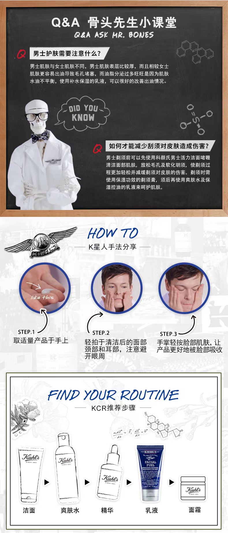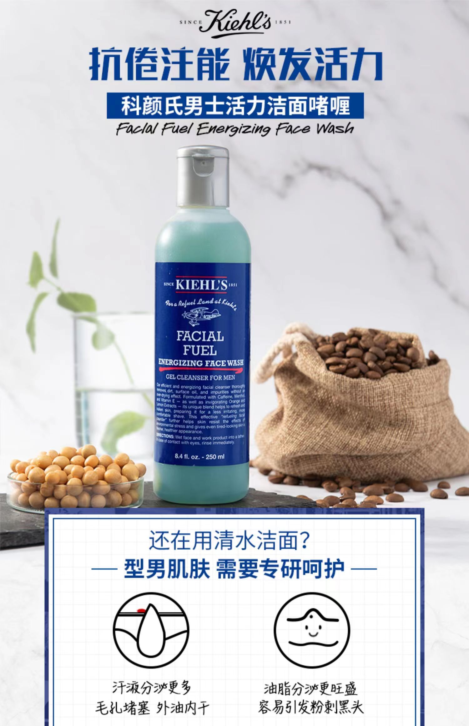 Kiehls/科颜氏男士活力洁面啫喱250ml 活力爽肤水250ml 全效保湿乳液125ml 圣诞护肤礼盒三件套