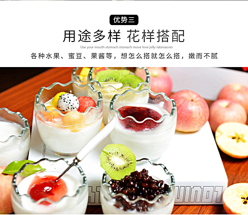 使用时可以按加各种豆类(红豆、绿豆、八宝豆等)、各种果酱或鲜果、珍珠粉圆或椰果、水晶等。