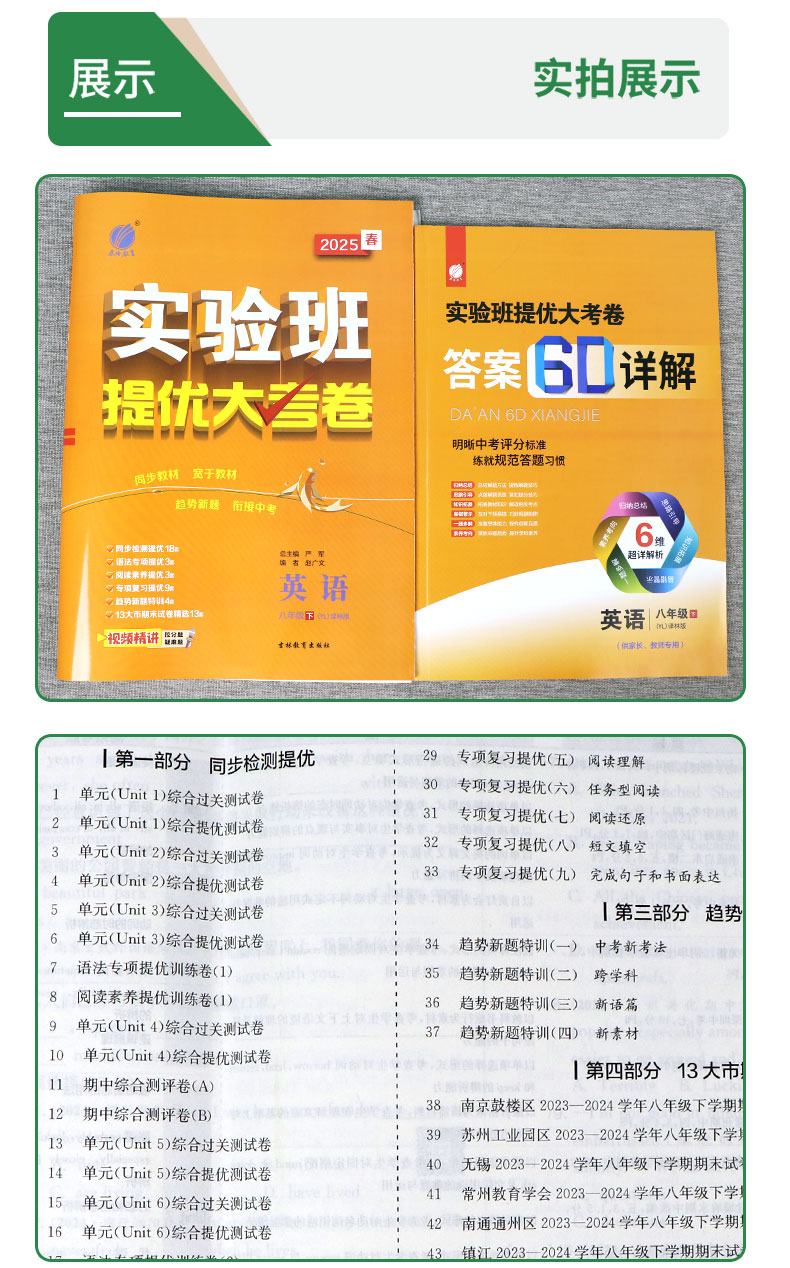 【过季25春下册】语文/数学/英语/物理/化学 实验班提优大考卷 初中七八九年级 初一二三版