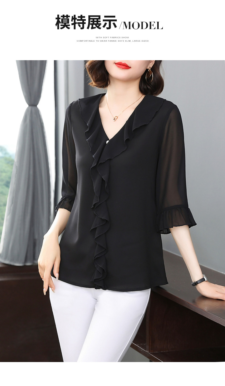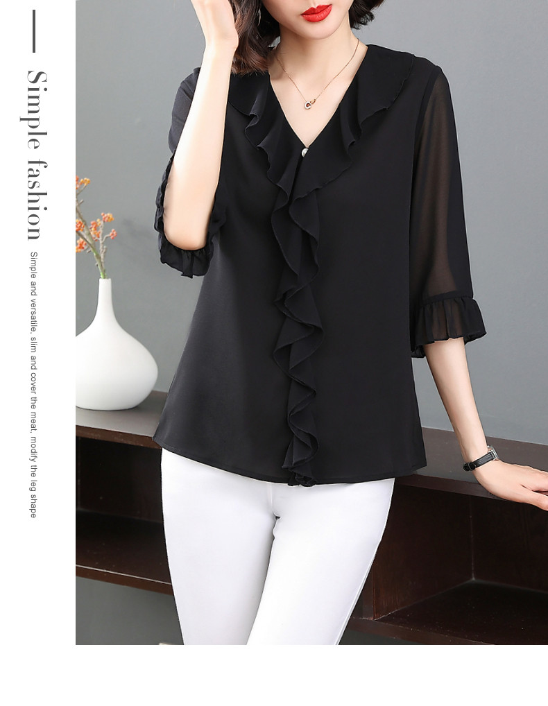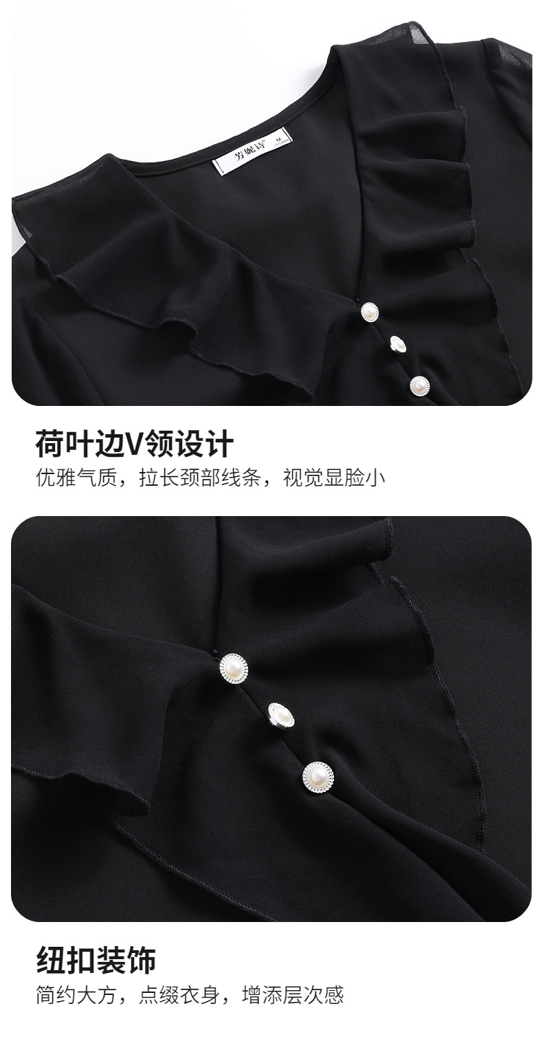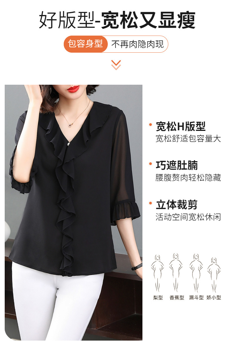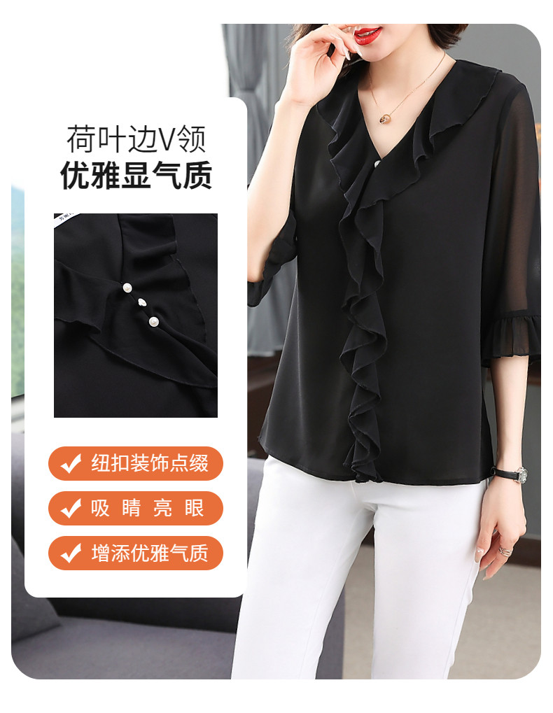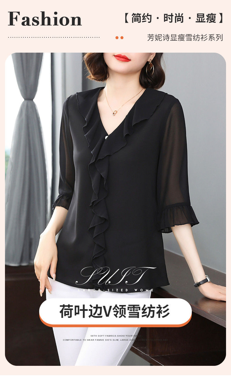 2026新款春季大码雪纺衫女衬衫时尚气质荷叶边小衫女士七分袖衬衣