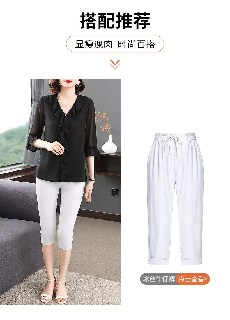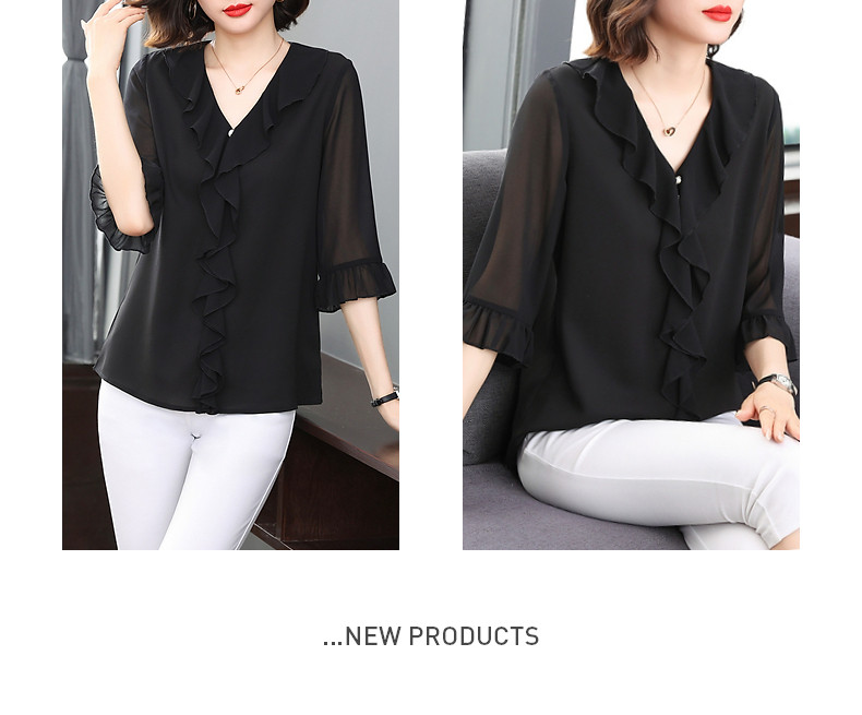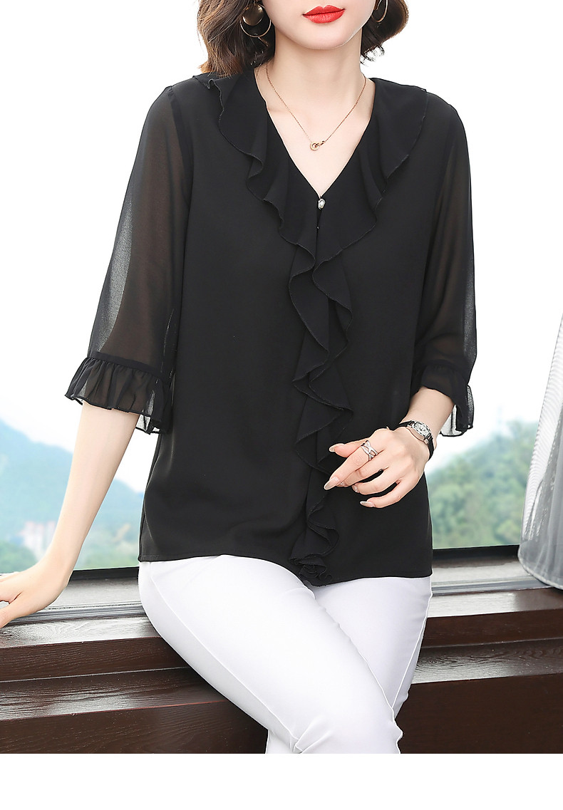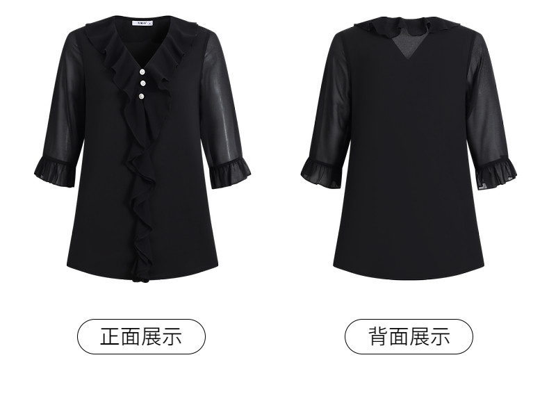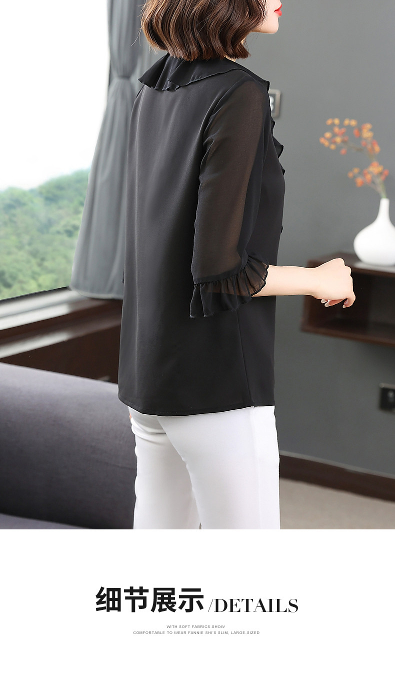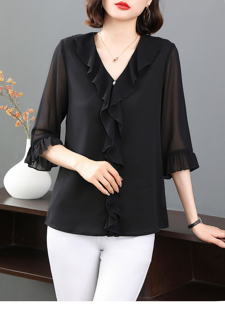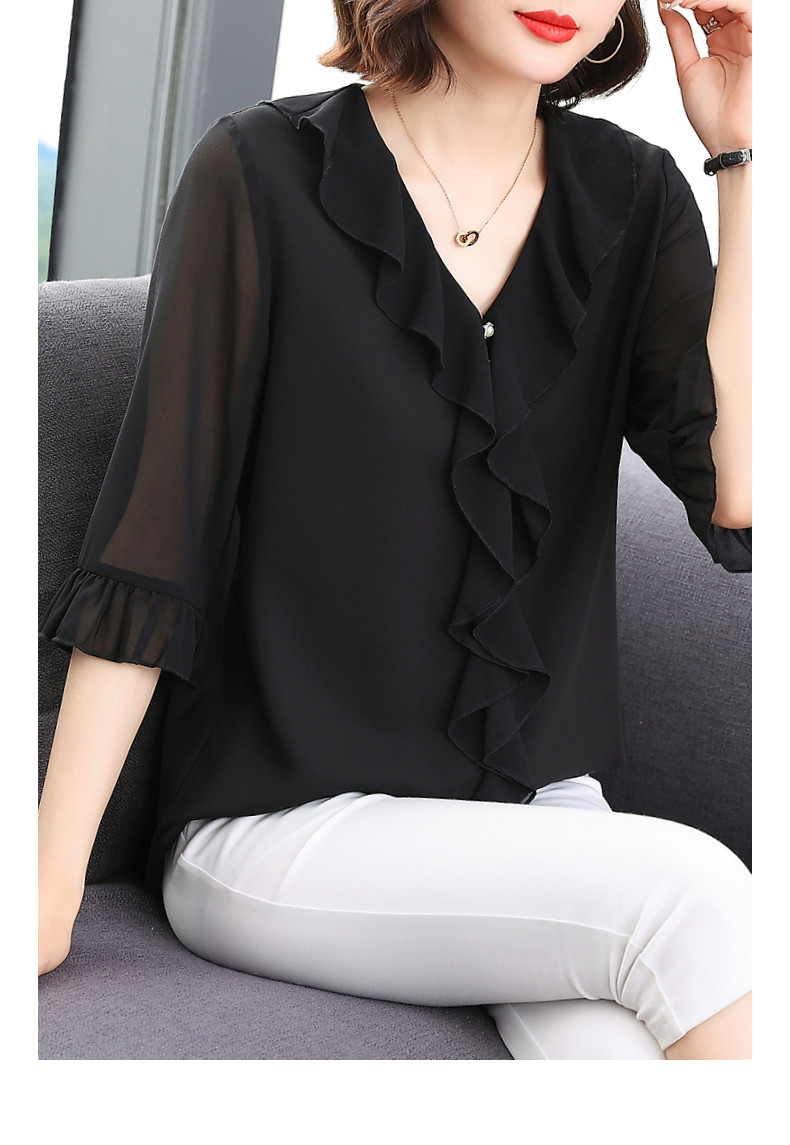 2026新款春季大码雪纺衫女衬衫时尚气质荷叶边小衫女士七分袖衬衣