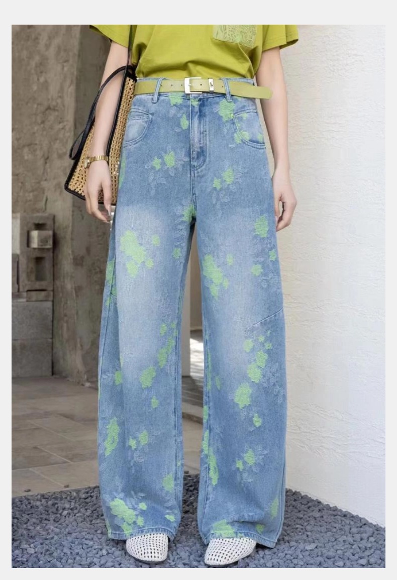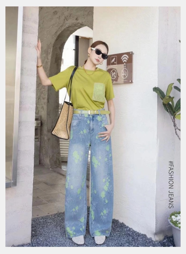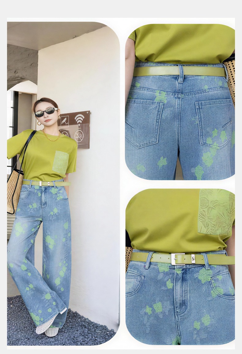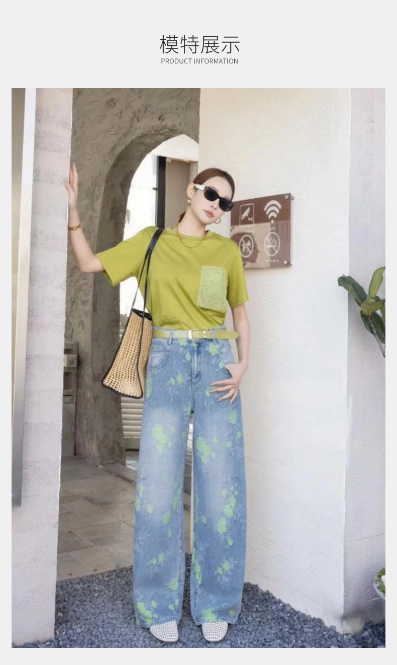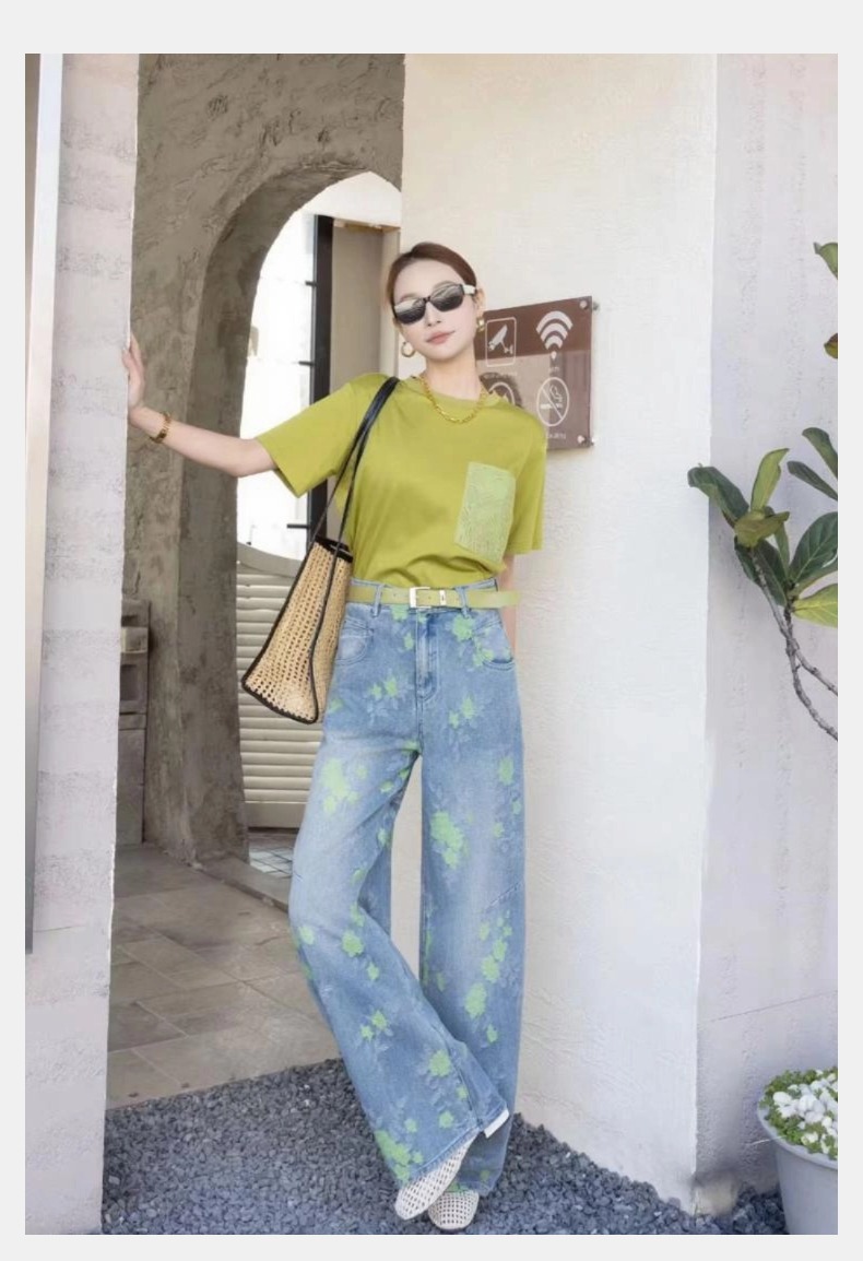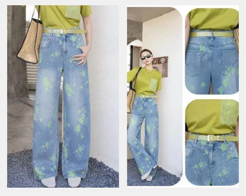 女装25秋冬新品休闲带花牛仔长裤2235-FC98006