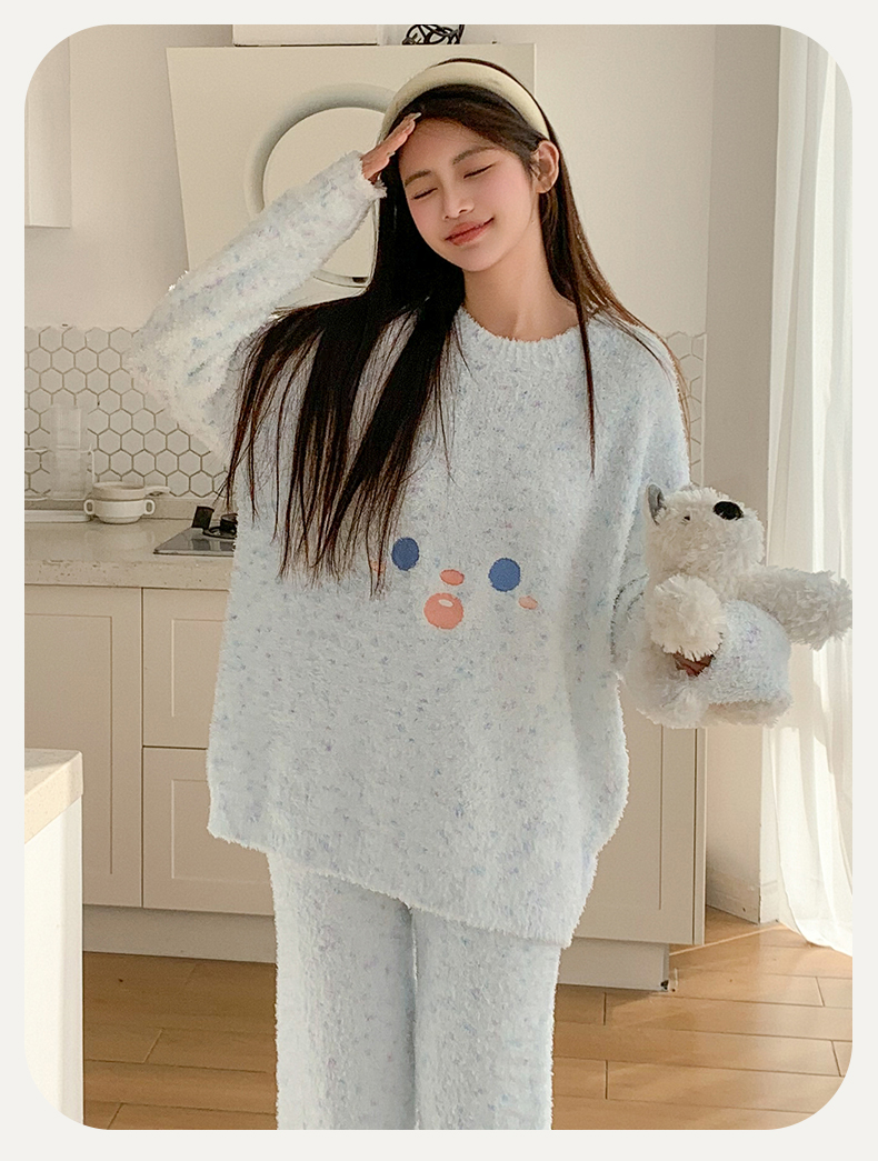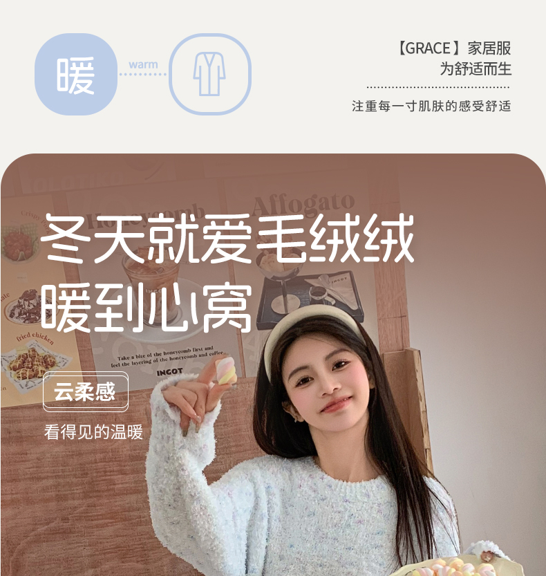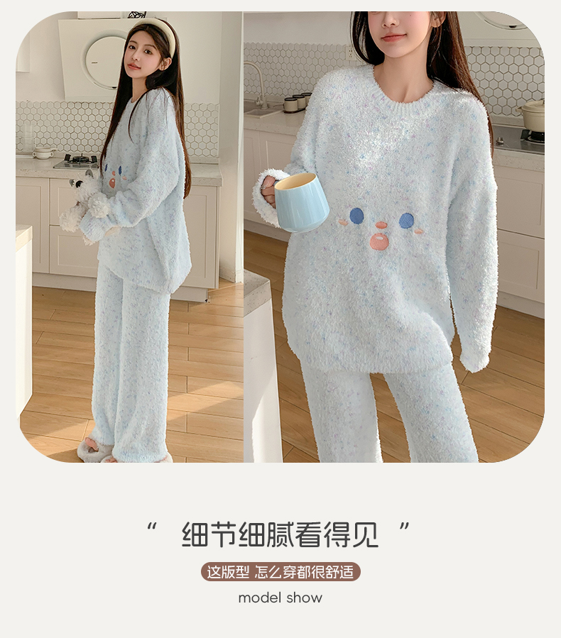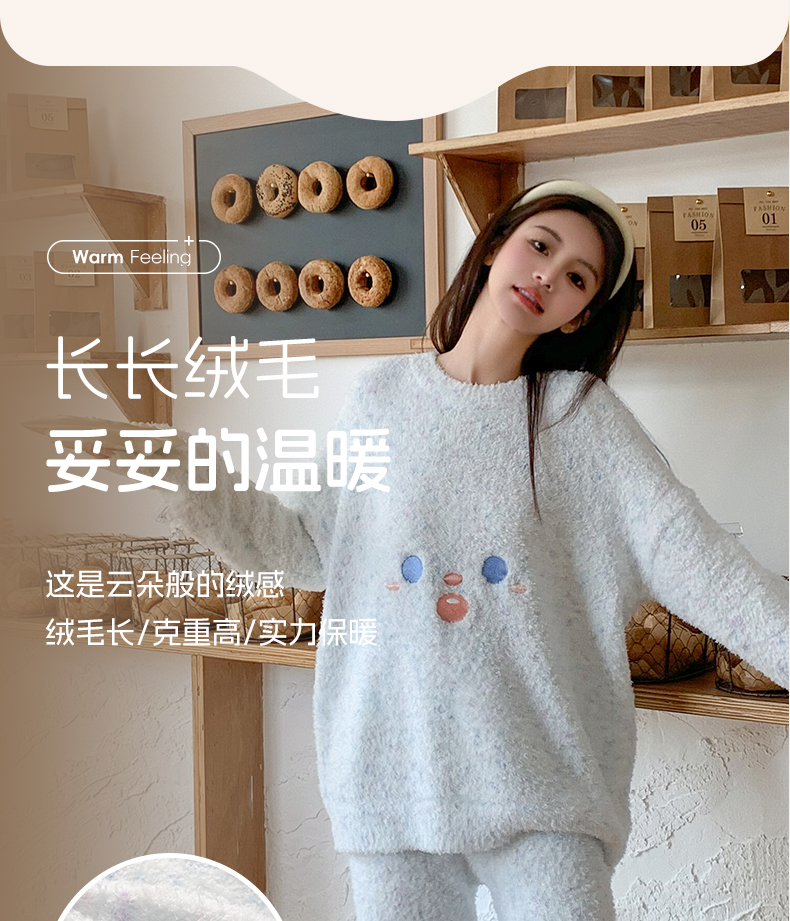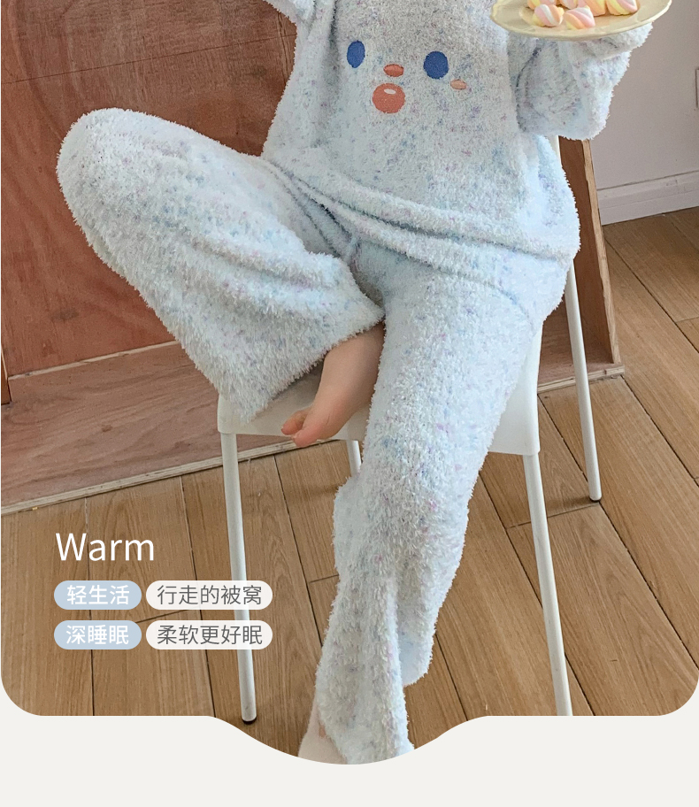 洁丽雅新款甜美睡衣女秋冬季半边绒柔软珊瑚绒可外穿家居服套装女