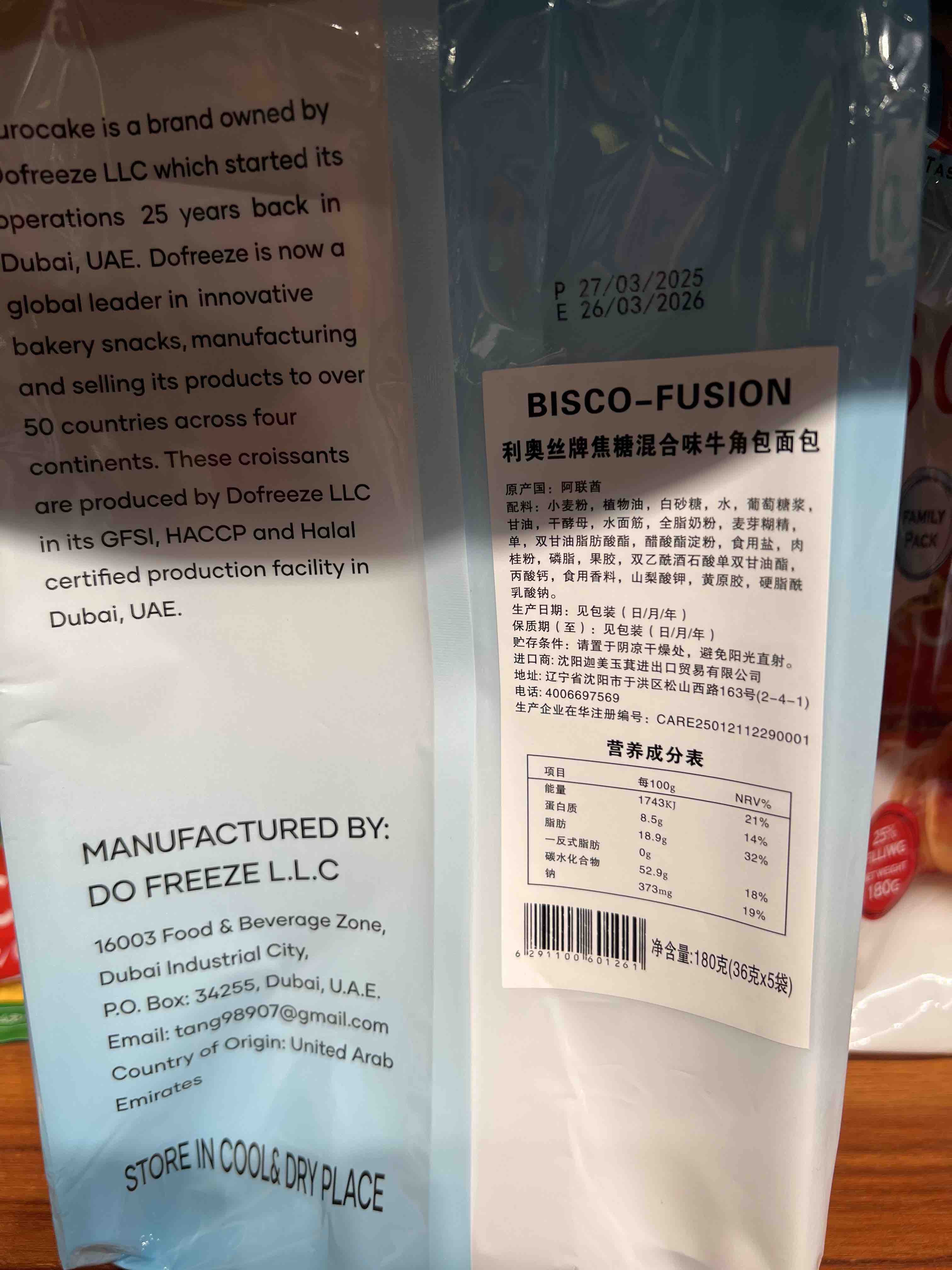 阿联酋奥丝牌焦糖混合味牛角包180g