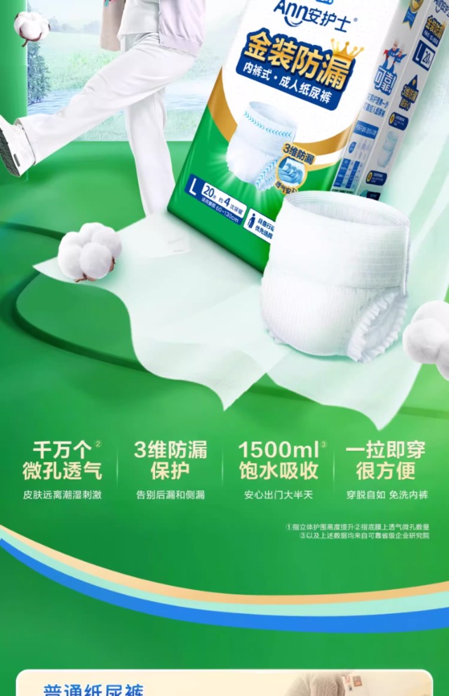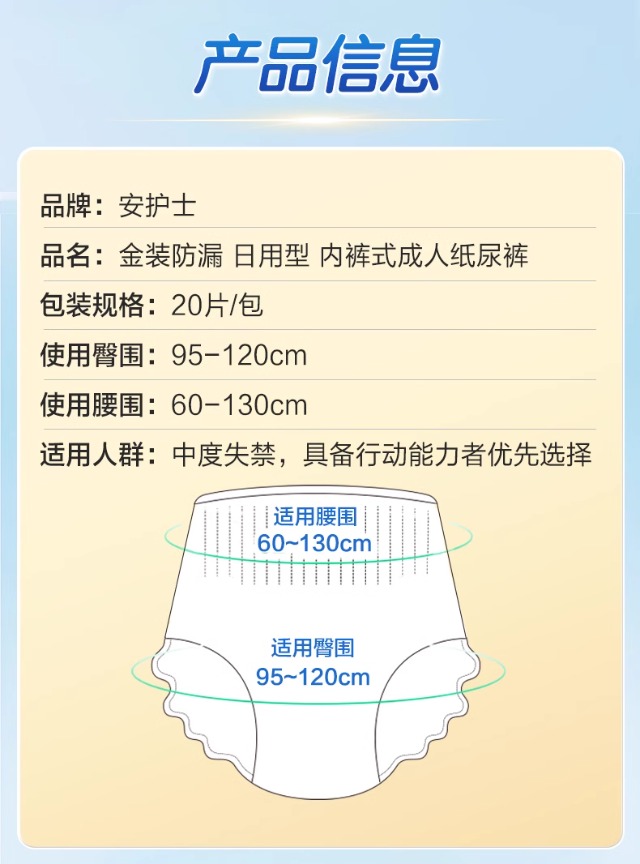 【安护士金装防漏拉拉裤 整箱】内裤型纸尿裤尿不湿M/L/XL码