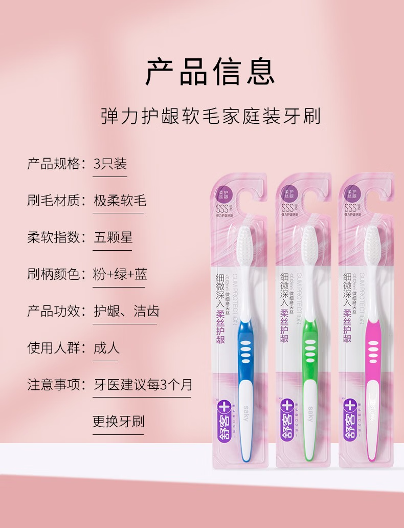 【内购专享】舒客 弹力护龈成人情侣牙刷单支装*3 旅行待客必备 新老包装随机发(颜色随机)
