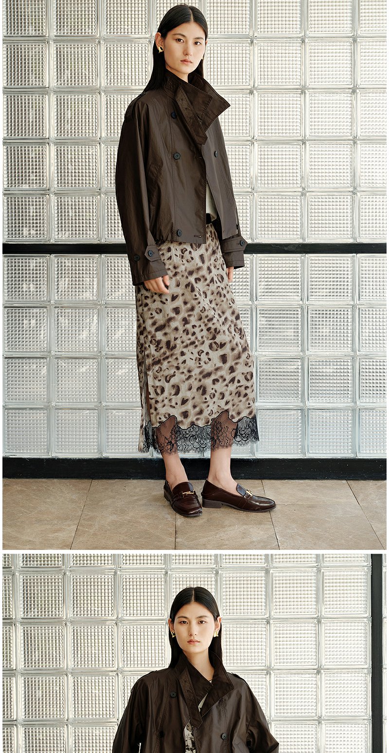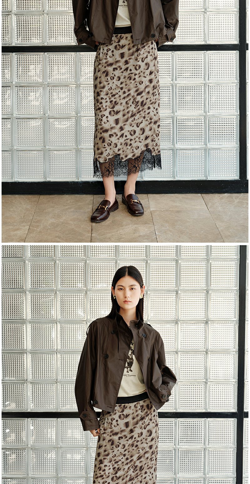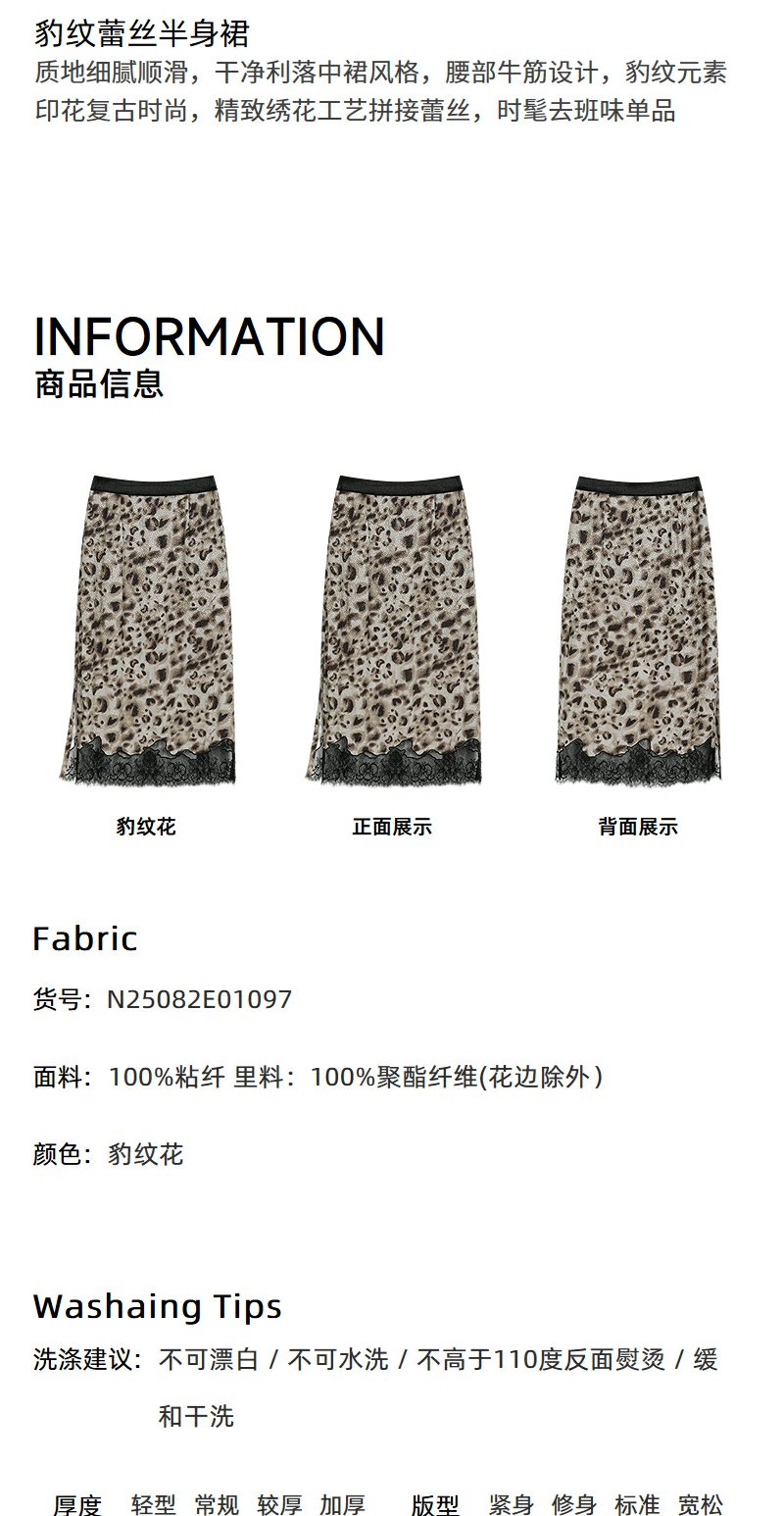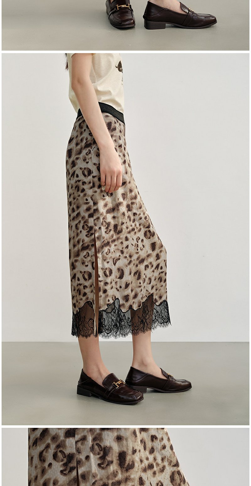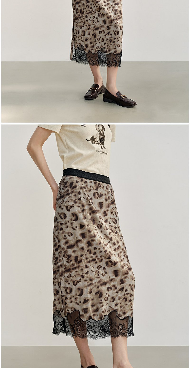 NEELLY纳俪商场同款秋新款豹纹蕾丝拼接半身裙女高级感显瘦中长裙N25082E01097