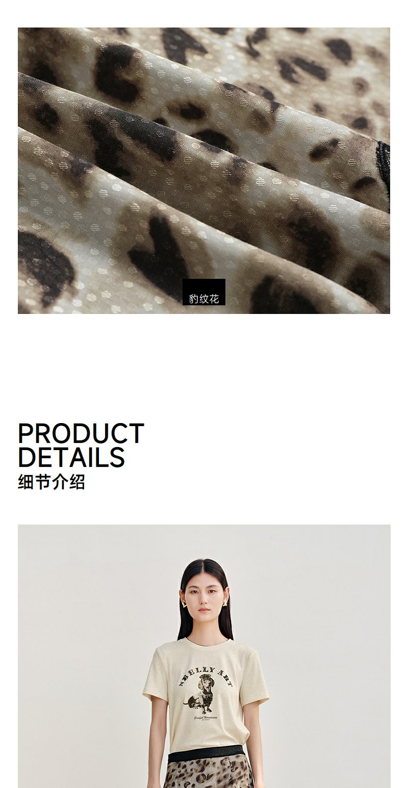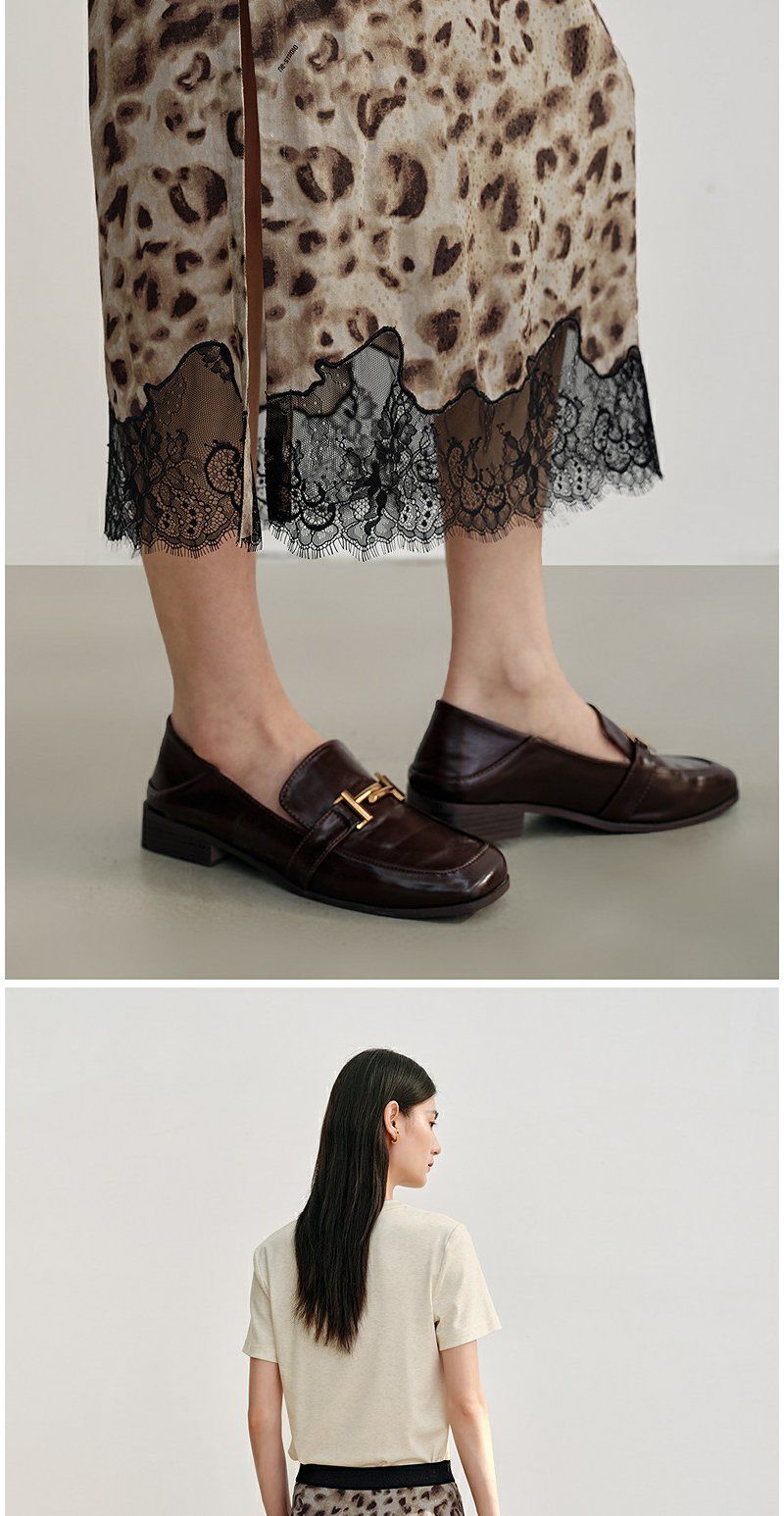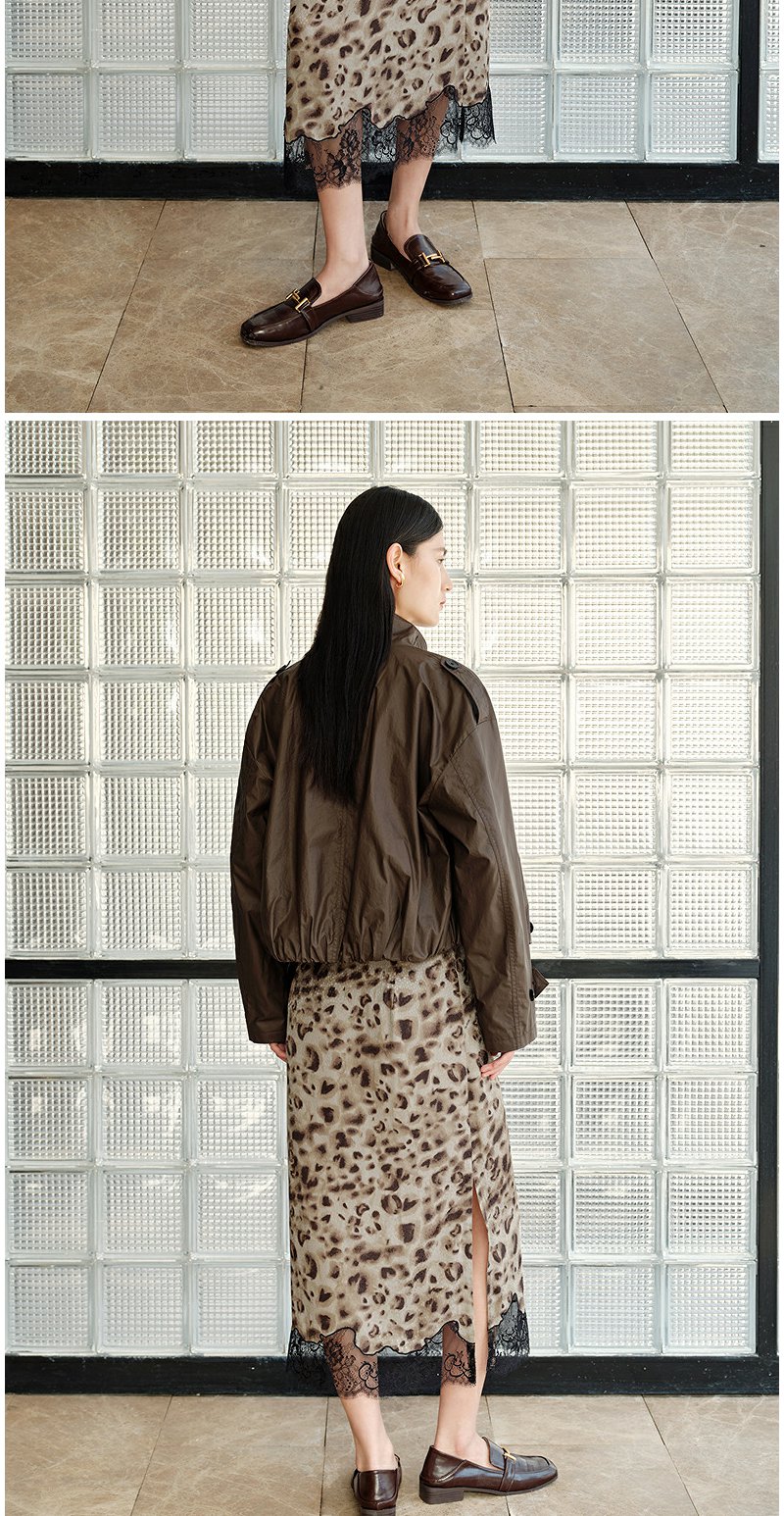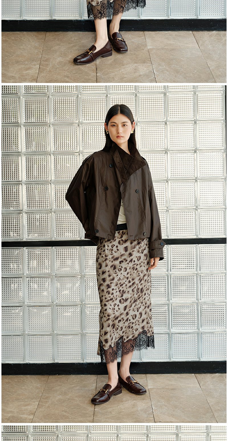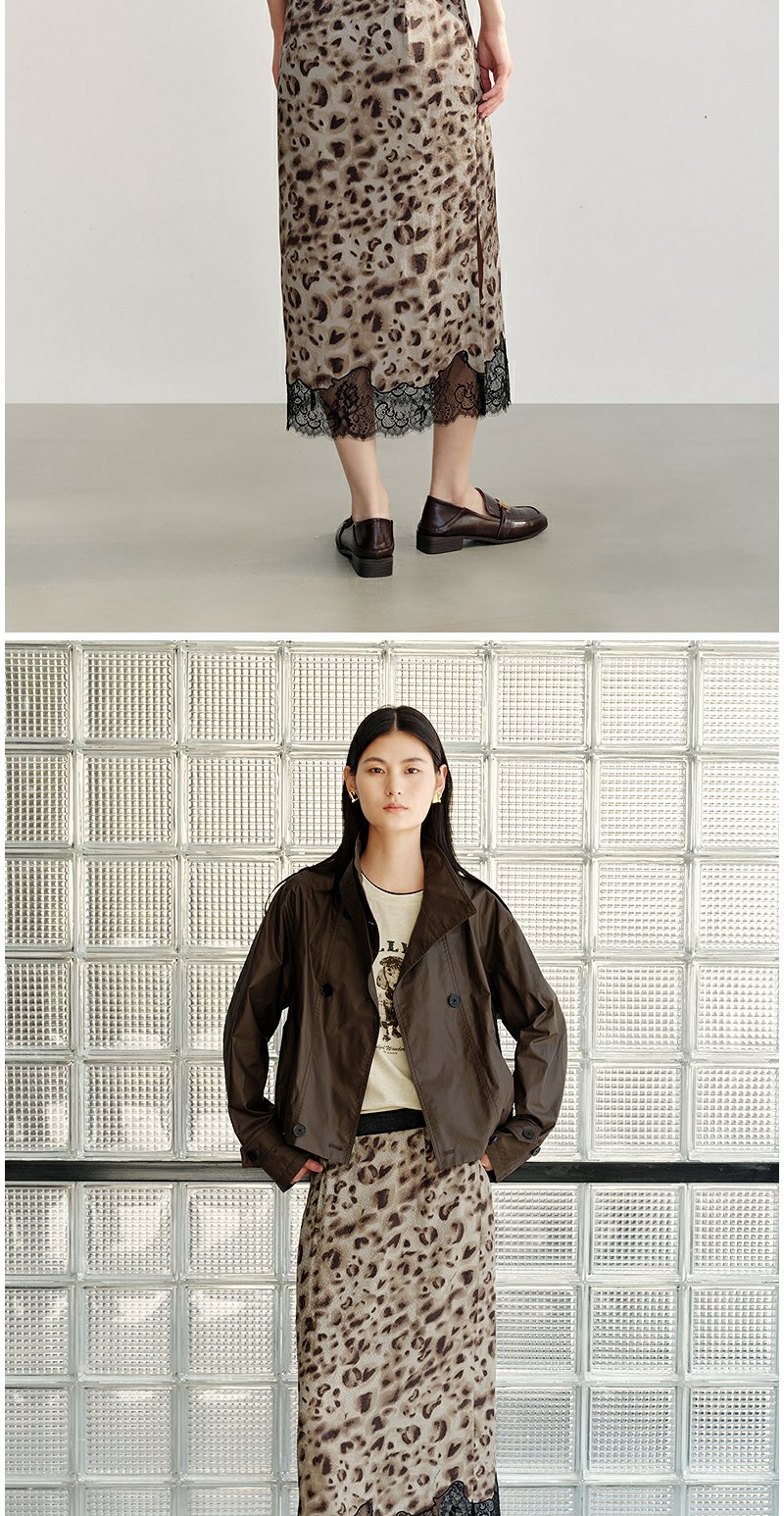 NEELLY纳俪商场同款秋新款豹纹蕾丝拼接半身裙女高级感显瘦中长裙N25082E01097