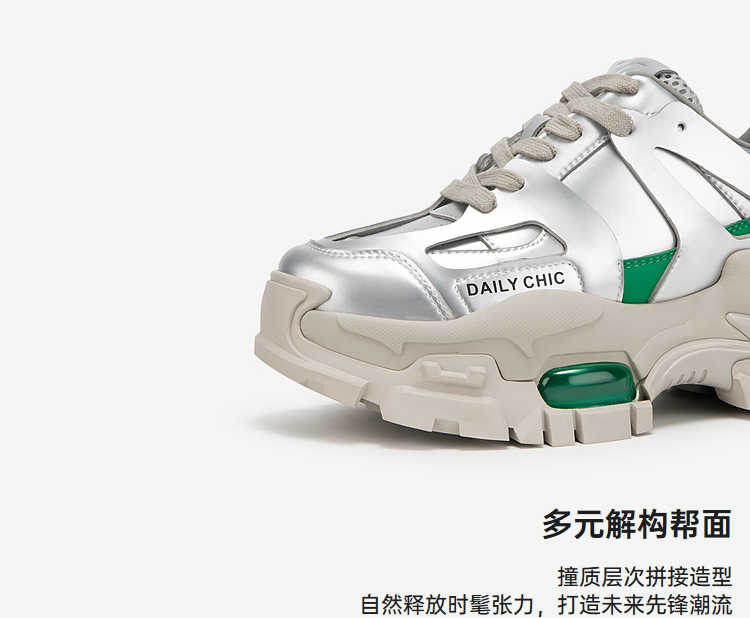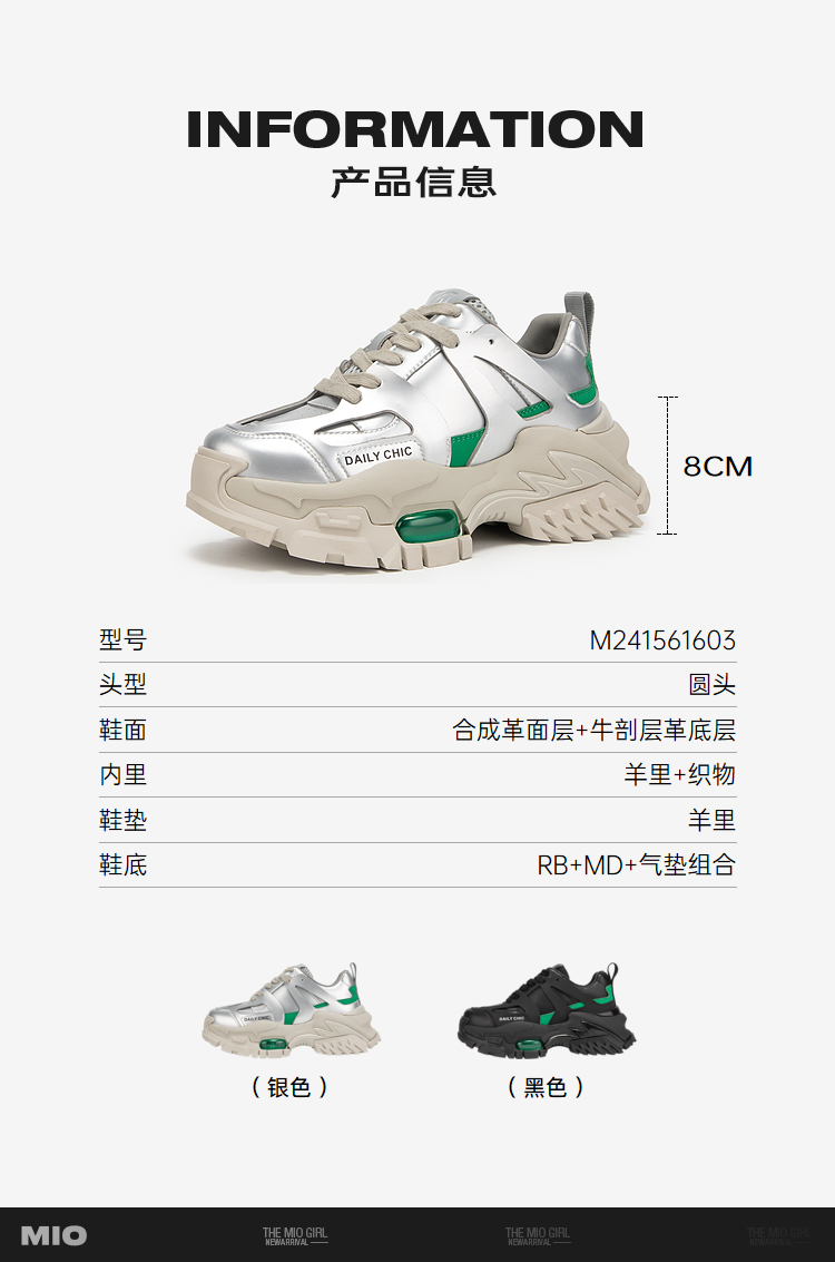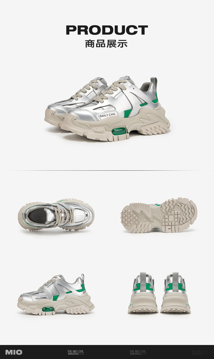 MIO米奥春季银色老爹鞋厚底时尚休闲鞋时髦舒适女鞋M241561603